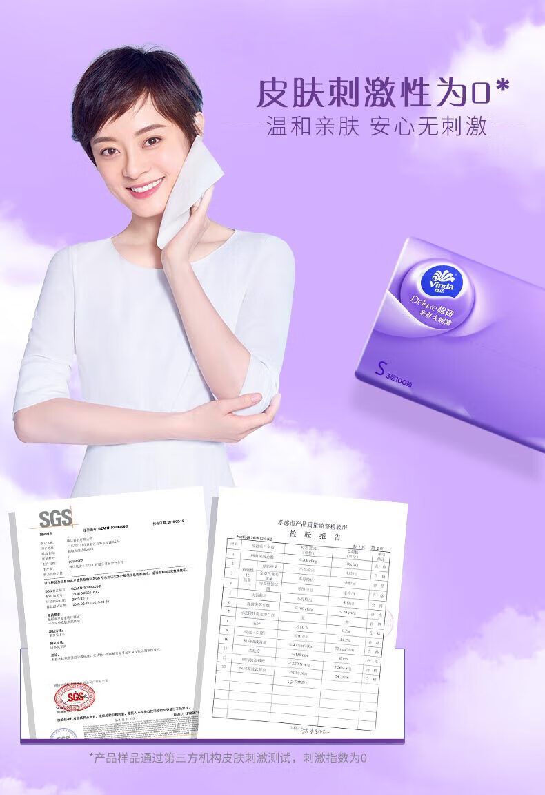 维达(vinda)抽纸 棉韧3层100抽*8包/提 亲肤无刺激 卫生纸纸巾餐巾纸【V2833-8包】