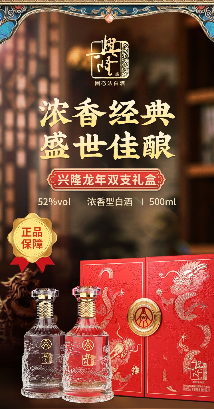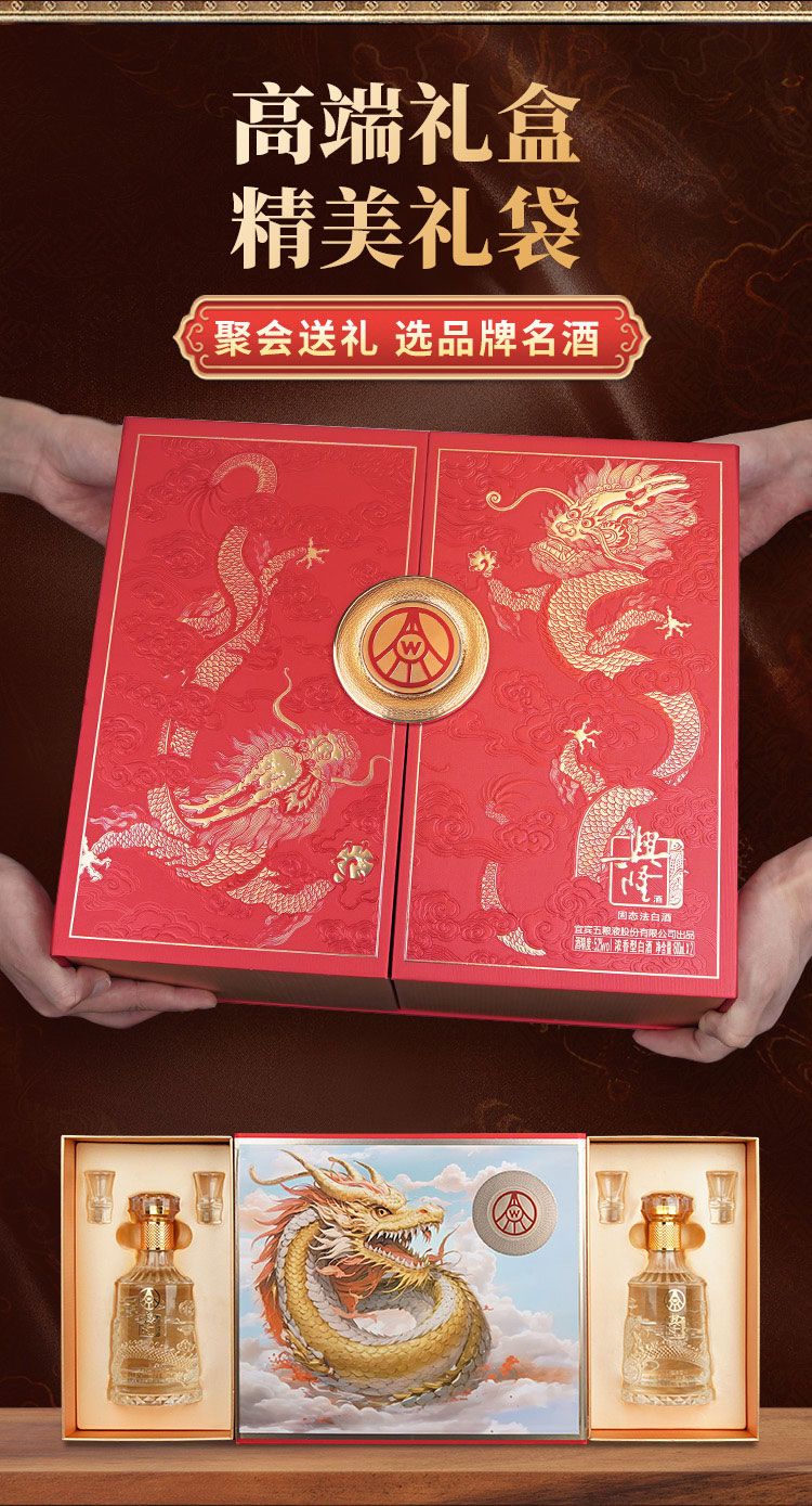 商品名称:五粮液兴隆龙年双支礼盒52度浓香型500ml*2瓶礼盒装