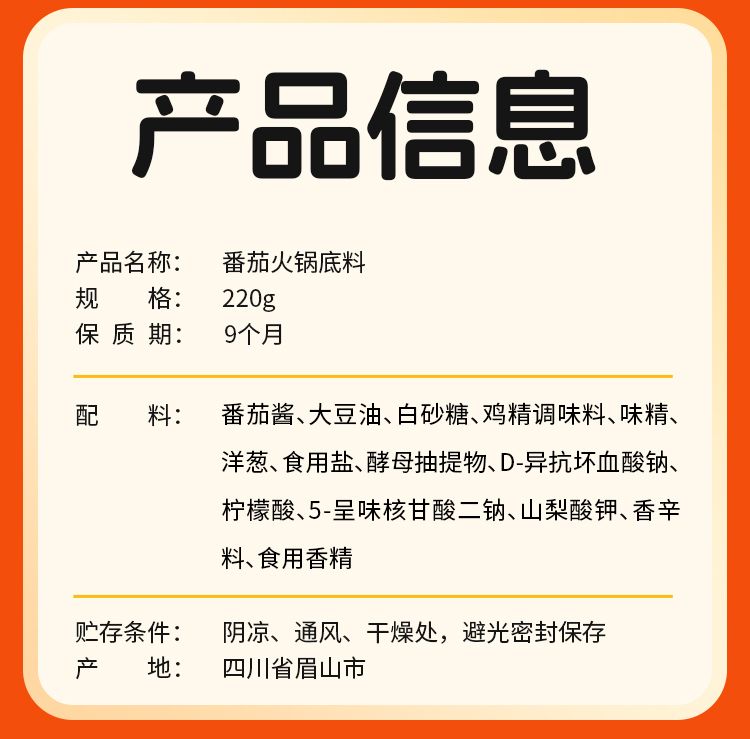 商品名称:川娃子番茄底料220g*2袋