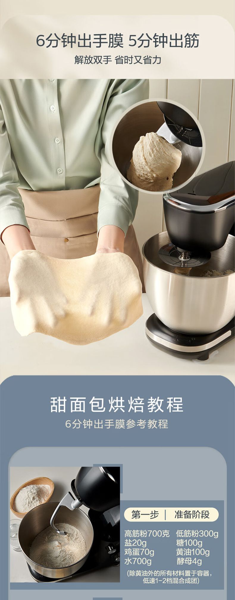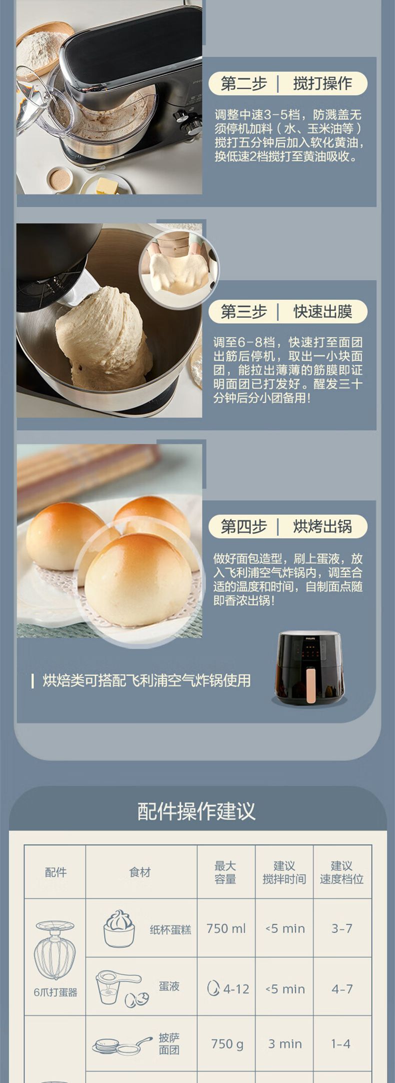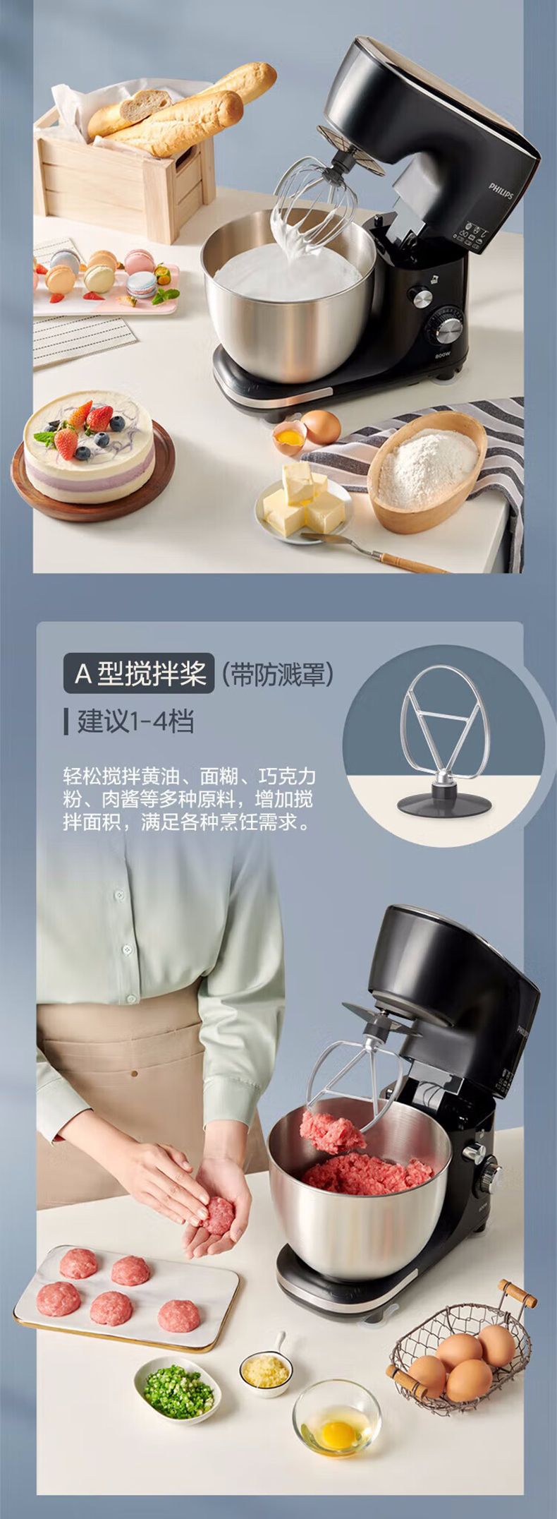 商品名称:飞利浦厨师机HR7922 家用多功能和面机台式小型揉面机全自动打蛋器5L大容量多档精准控速