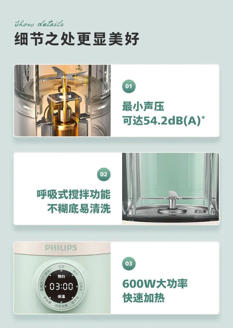 商品名称:飞利浦破壁机HR2038白色 家用迷你免过滤豆浆机降噪低音多功能料理机 0.6升榨汁机搅拌婴儿辅食机