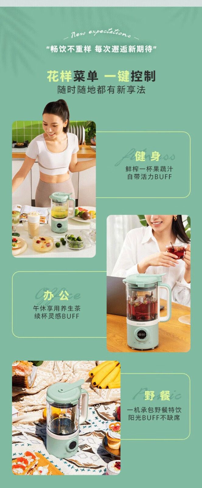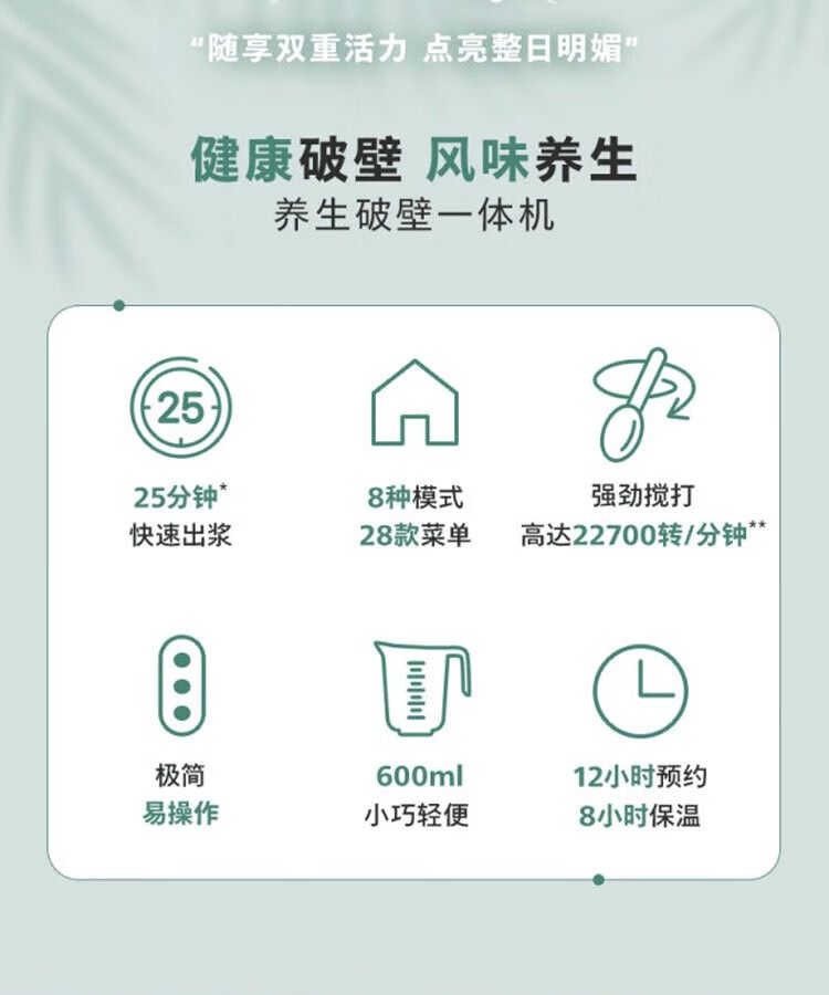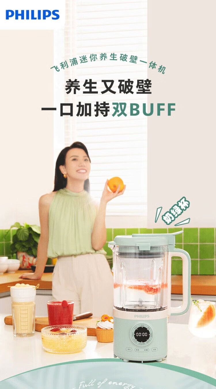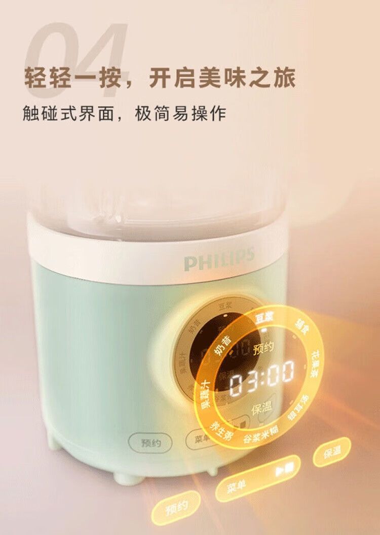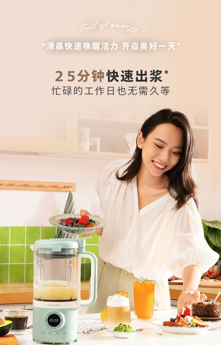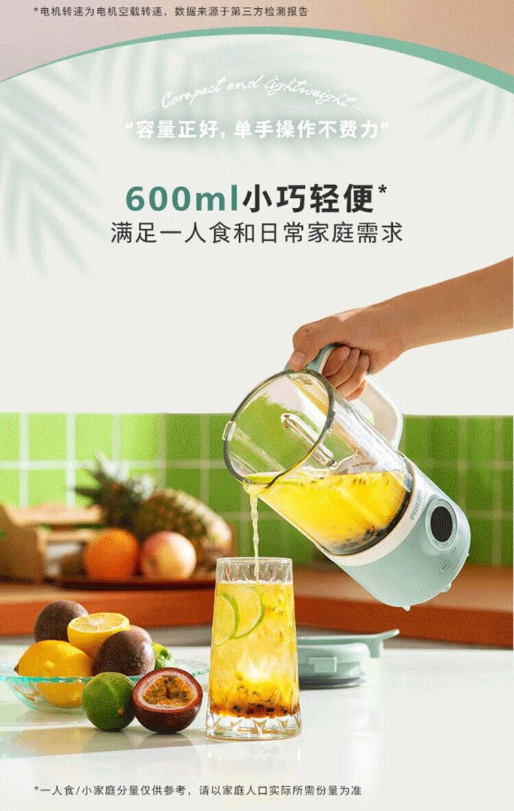 飞利浦破壁机HR2038白色 家用迷你免过滤豆浆机降噪低音多功能料理机 0.6升榨汁机搅拌婴儿辅食机