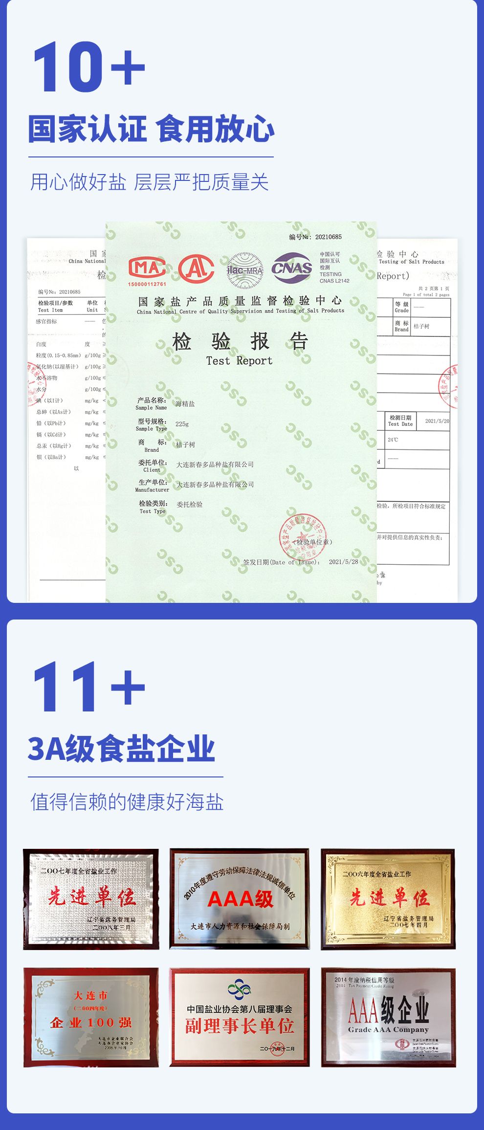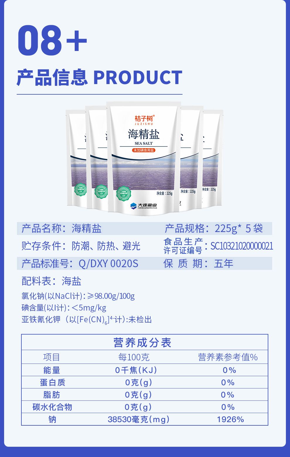 商品名称:桔子树海精盐(加碘/未加碘)225g*10袋