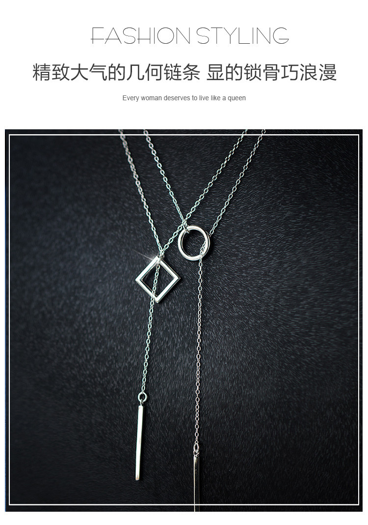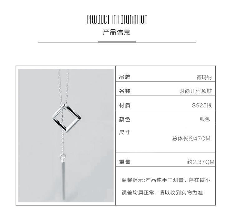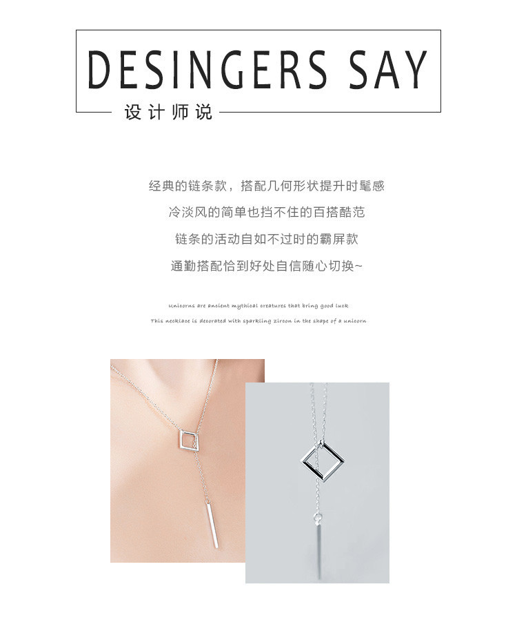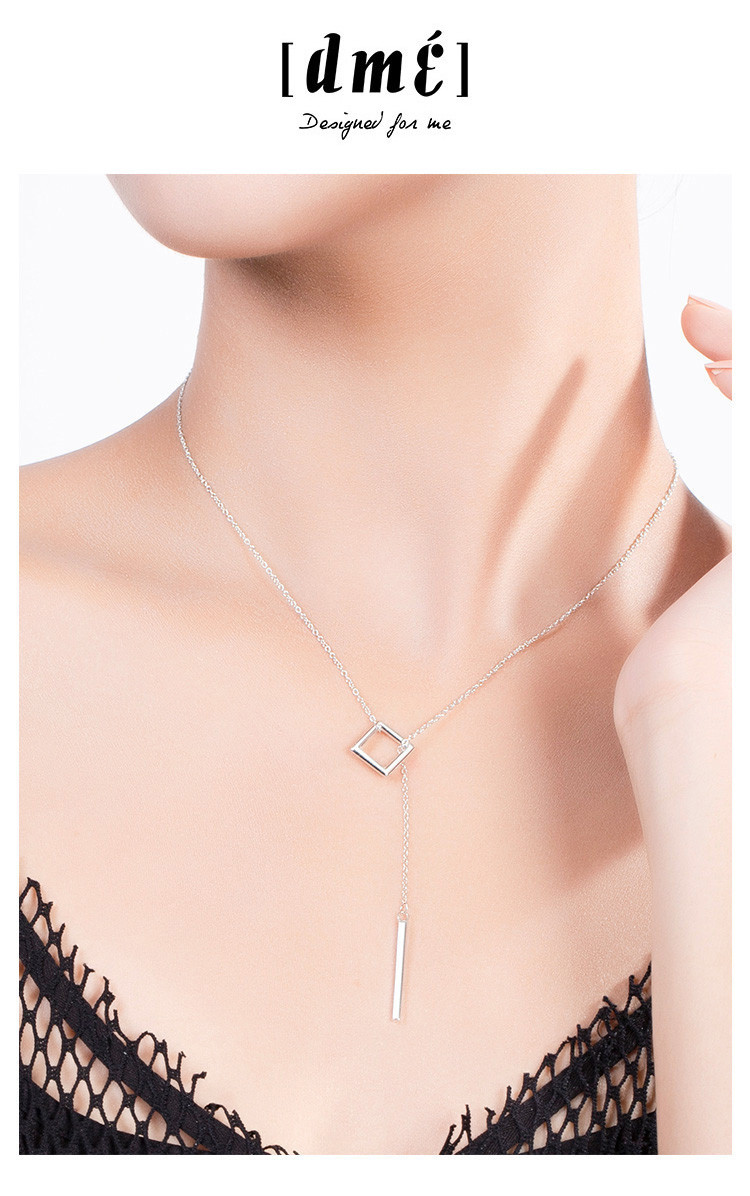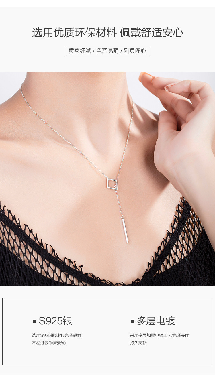 商品名称:925纯银方形一字扣项链女冷淡风锁骨链 477313