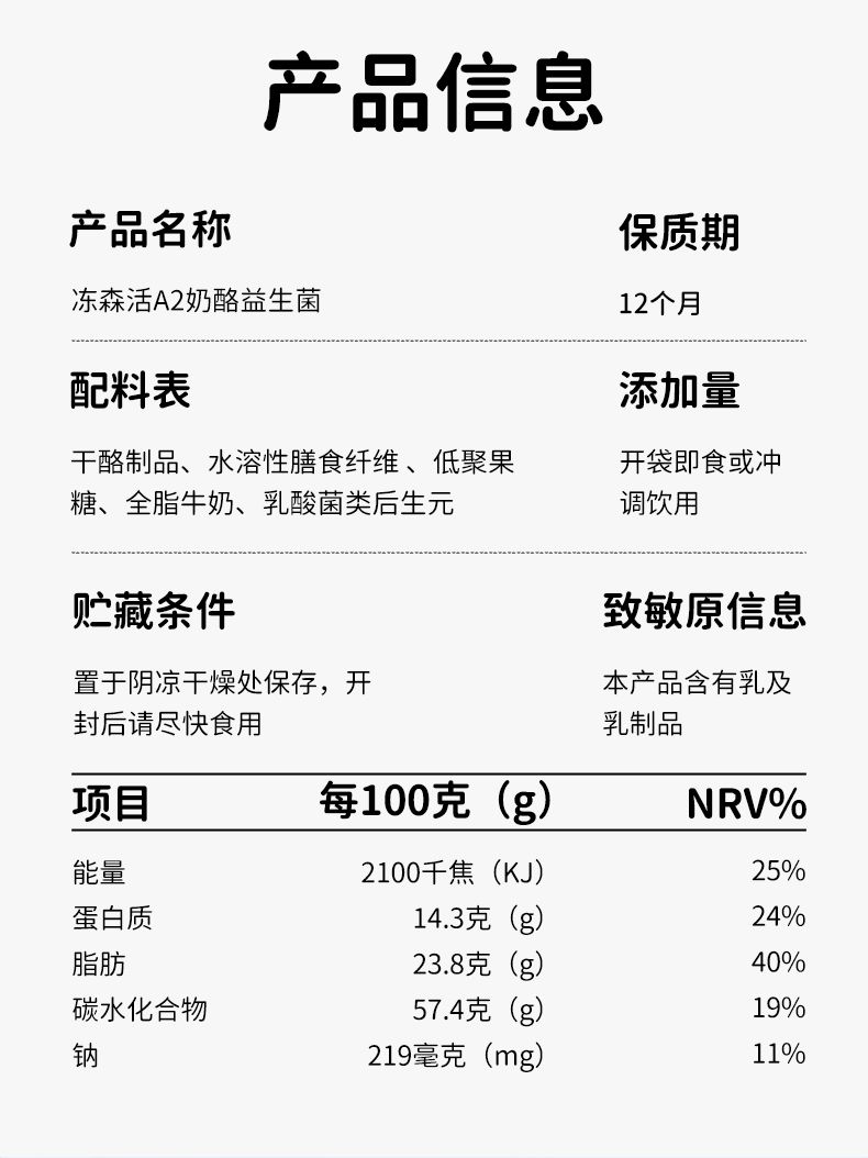商品名称:冻森活A2奶酪益生菌21g(15袋)/盒*4盒