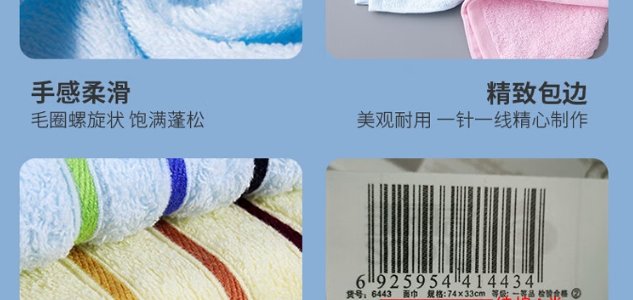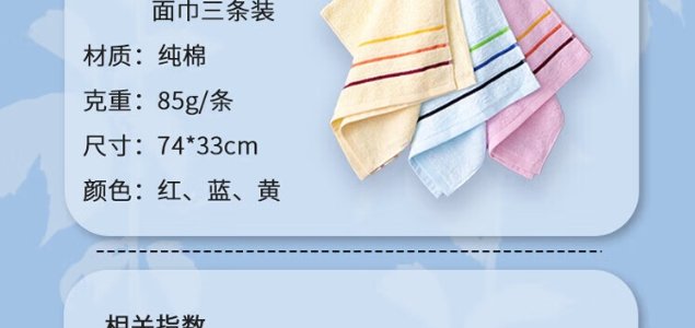 商品名称:洁丽雅(Grace)新疆棉 5A级抗菌毛巾家纺 3条红+兰+黄 74*33cm