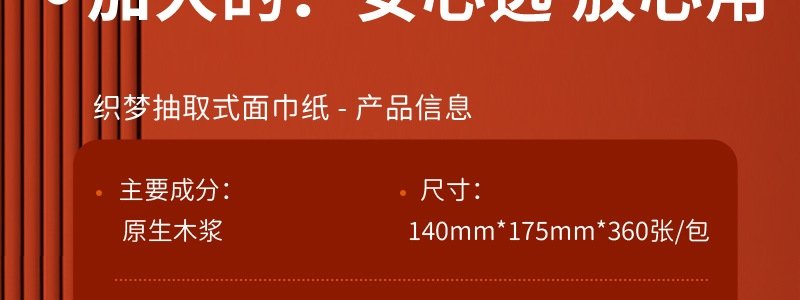 商品名称:织梦 软包大号抽纸餐巾纸 4层*90抽*24包