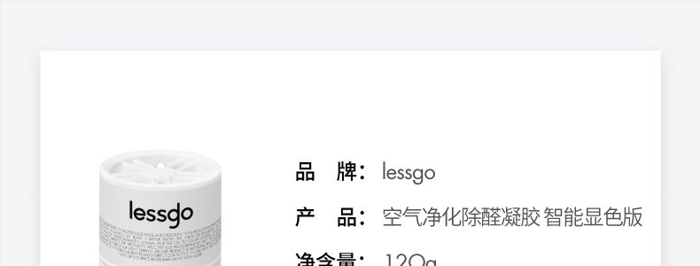 商品名称:利事多(lessgo)空气净化除醛凝胶 120g/罐 智能显色版(2罐+赠甲醛检测盒*2)