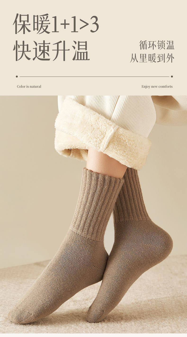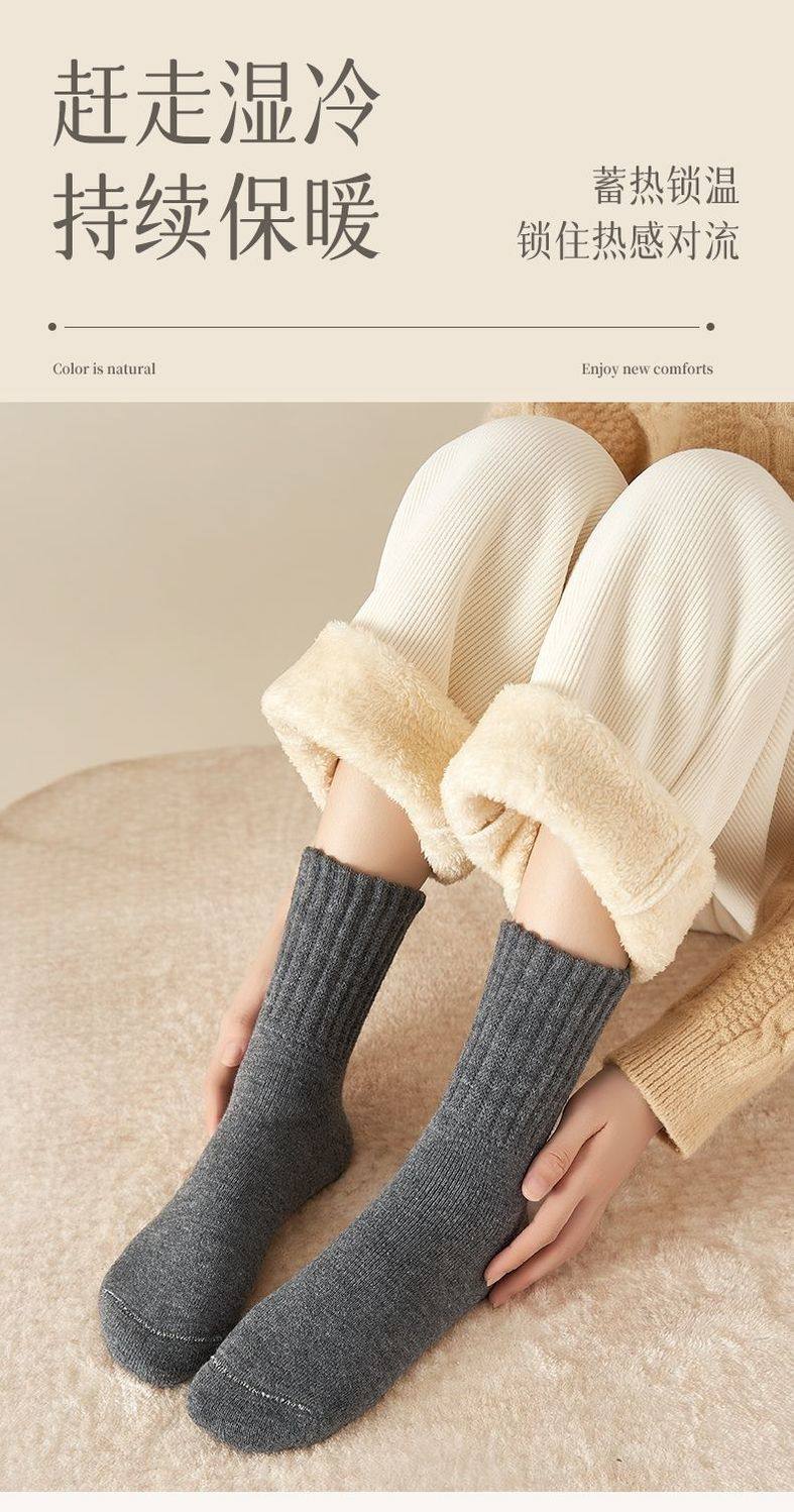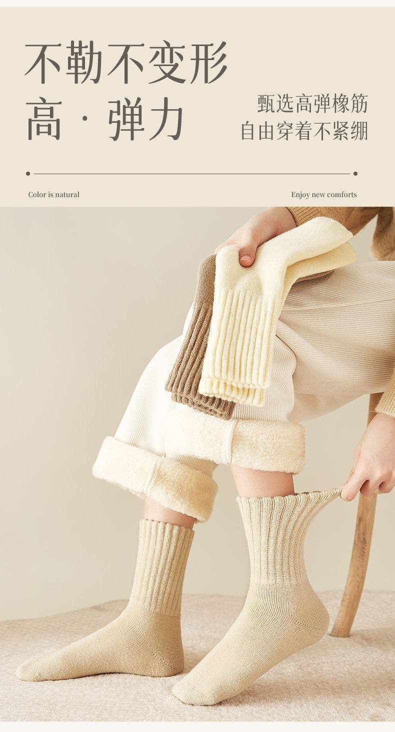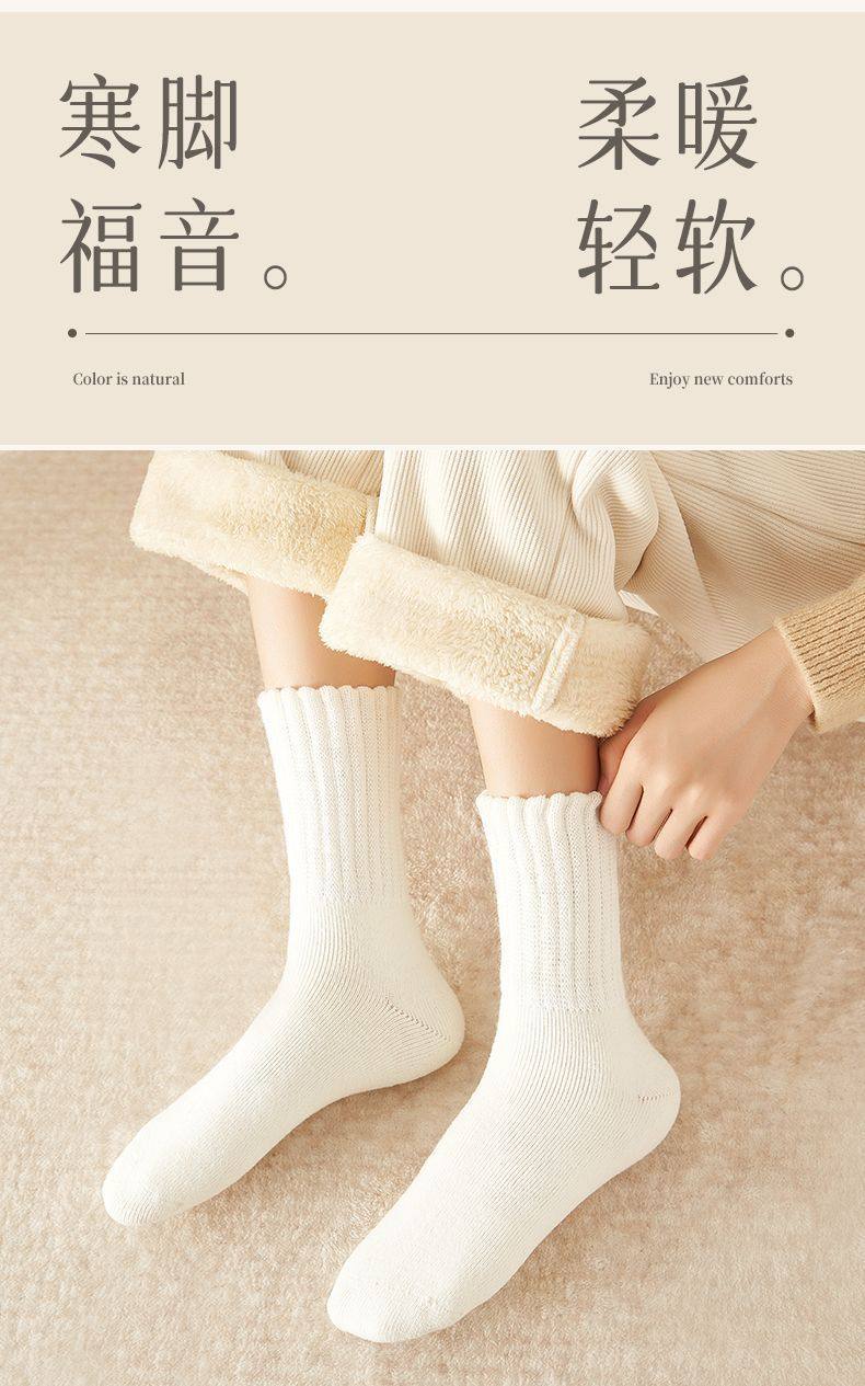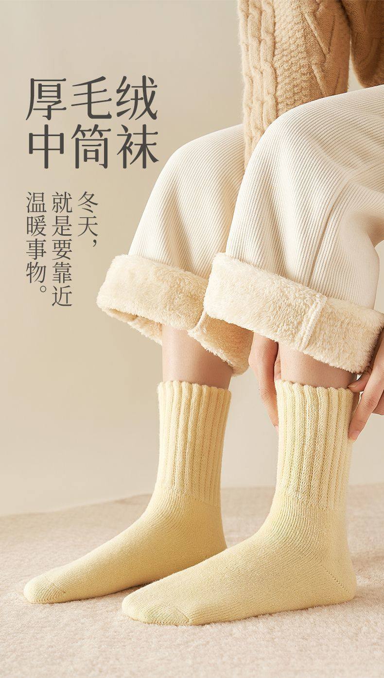 商品名称:雪地袜子女秋冬季加厚加绒保暖脚厚袜子超厚防寒外穿中筒地板袜子