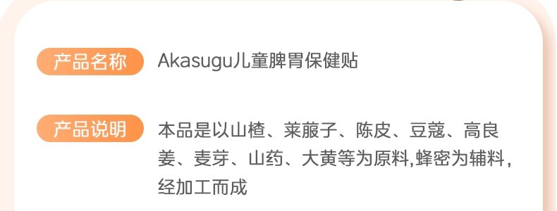 商品名称:【买赠】爱舒屋(Akasugu)儿童脾胃保健贴 6贴*2盒 赠1盒