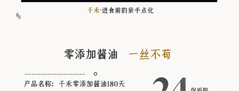 商品名称:千禾 零添加180天本酿酱油(外阜) 500ml+千禾5°白醋 500ml