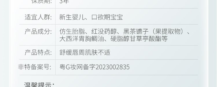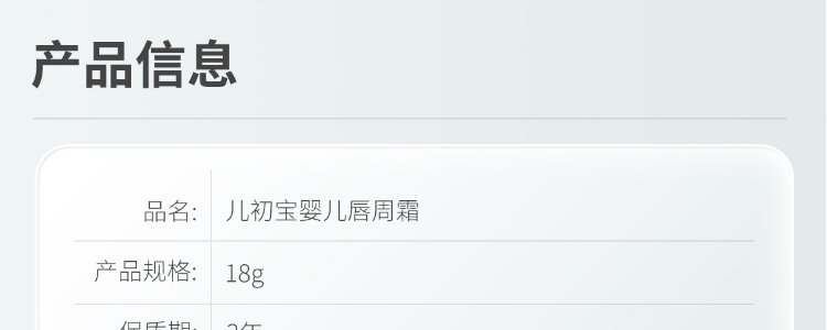 商品名称:儿初宝(BABETRUE)婴儿唇周霜 18g