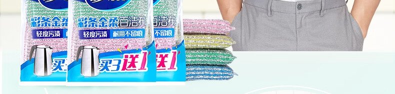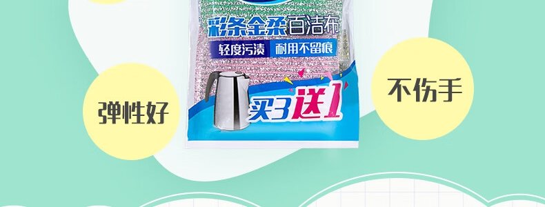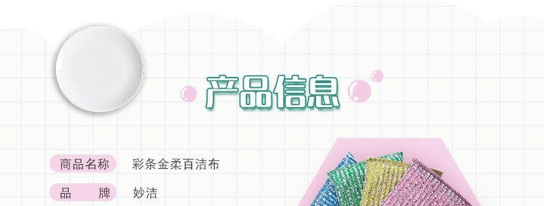 商品名称:妙洁 彩条金柔百洁布清洁布 去油污 厨房专用4片装*3袋