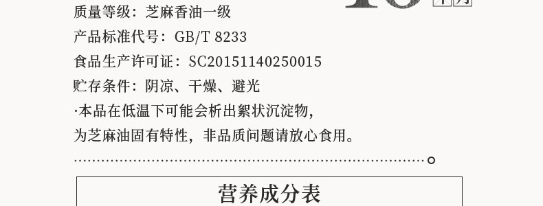 商品名称:千禾 芝麻香油 220ml + 千禾5°白醋 500ml