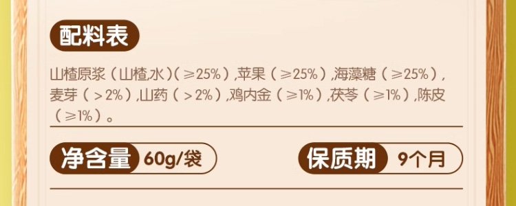 商品名称:小鹿蓝蓝-鸡内金山楂片60g
