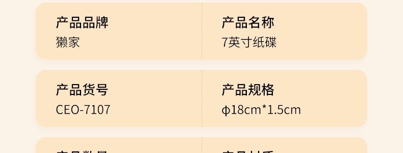 商品名称:希艺欧 原浆纸碟8只装【7英寸】