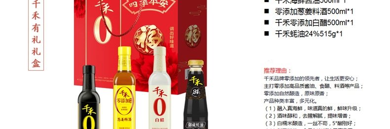 商品名称:千禾 零添加四季平安礼盒 2015g 四瓶装礼盒