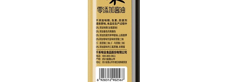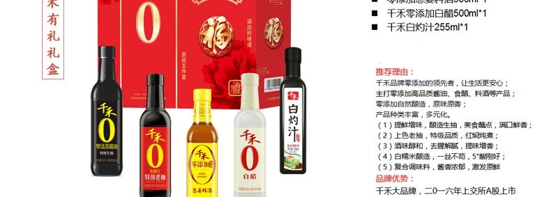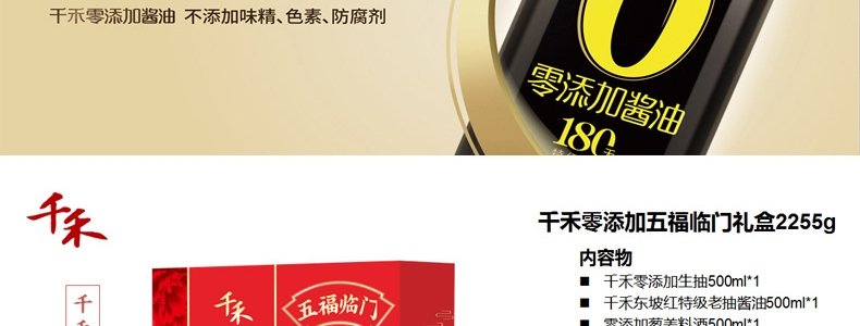 商品名称:千禾 零添加五福临门礼盒 2255g 五瓶装礼盒