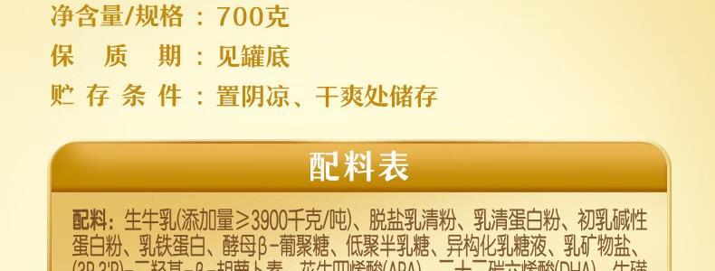 商品名称:伊利 QQ星榛高儿童成长配方奶粉 700g 铂金装