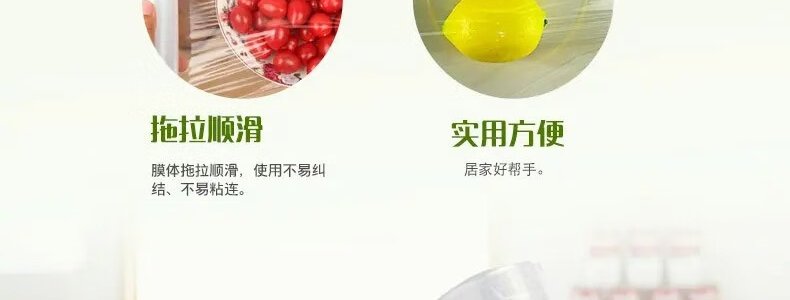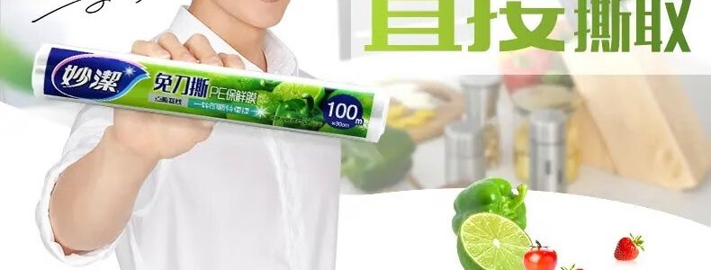 商品名称:妙洁 免刀撕PE保鲜膜 30厘米*100米大碗经济装