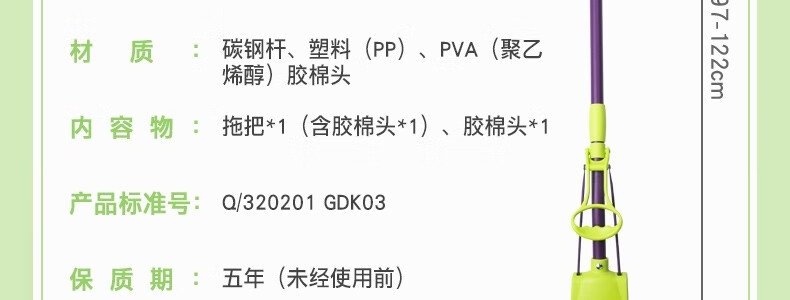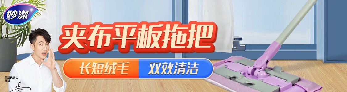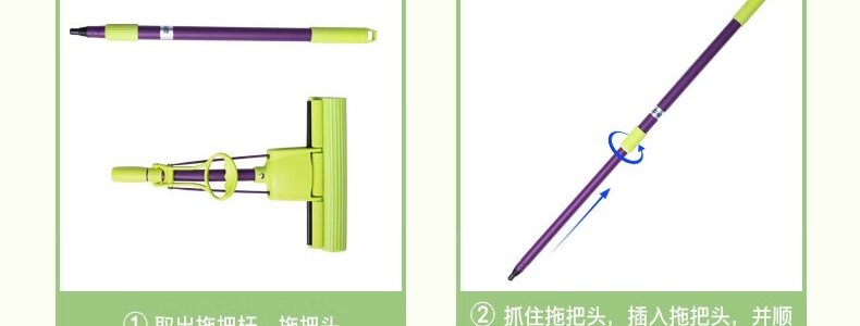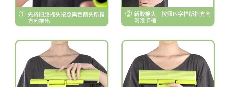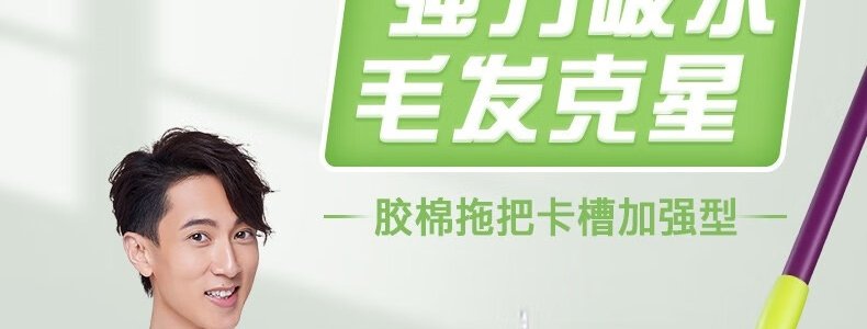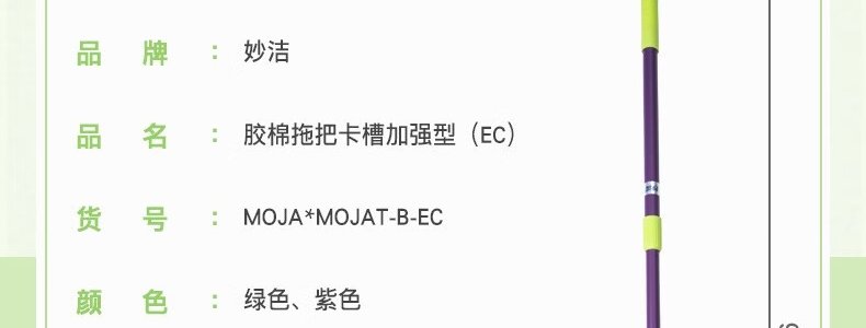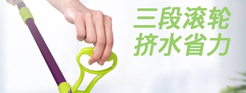 商品名称:妙洁 胶棉拖把卡槽加强型墩布挤水式拖把+2个头