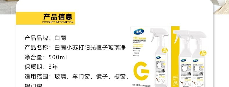 商品名称:白兰 小苏打阳光橙子玻璃净 500ml*2瓶/组