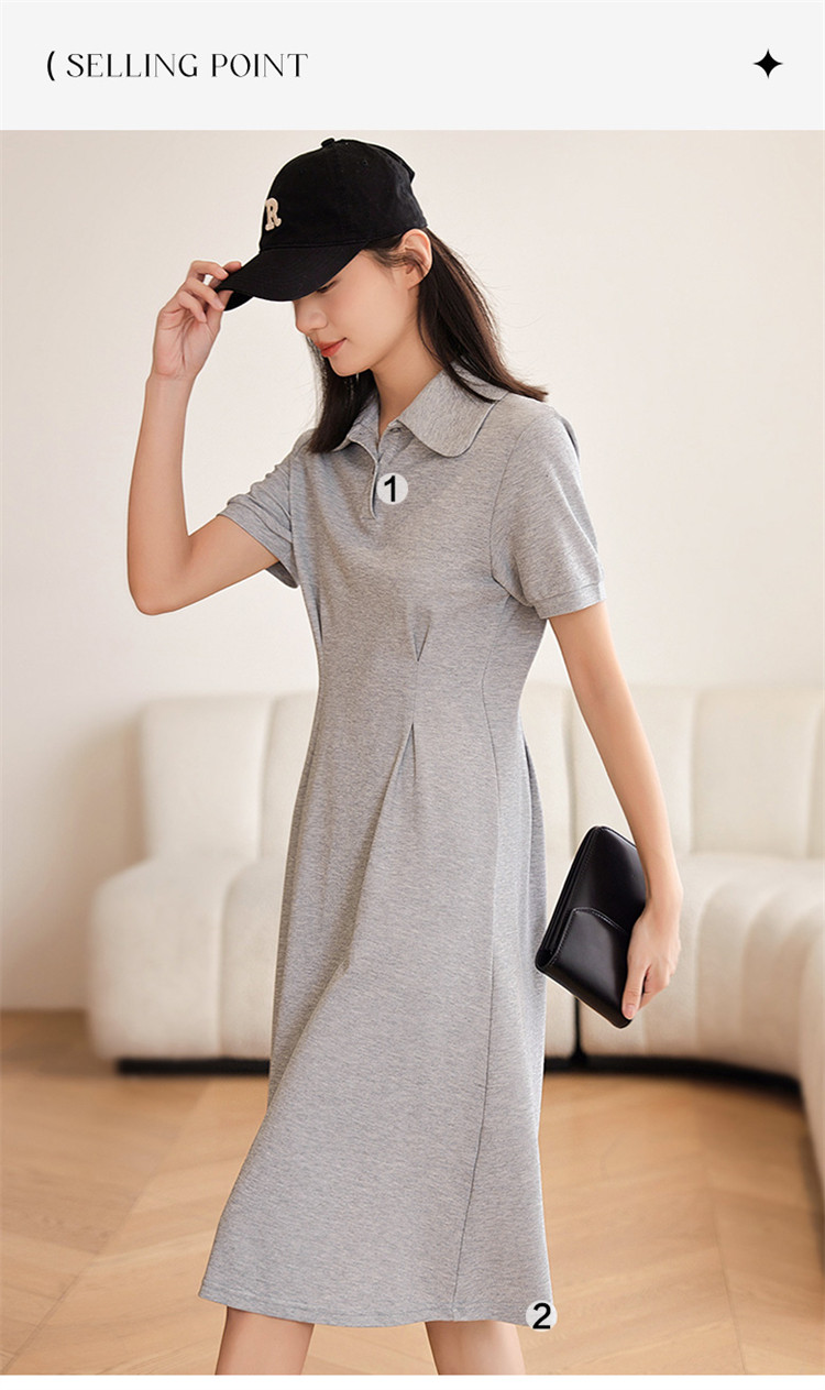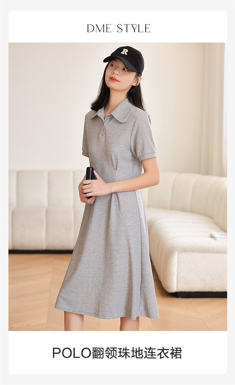 【Polo翻领连衣裙】夏款泡泡袖珠地针织连衣裙女 551810