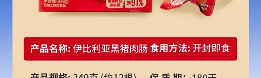 商品名称:小鹿蓝蓝 伊比利亚黑猪肉肠 240g/盒