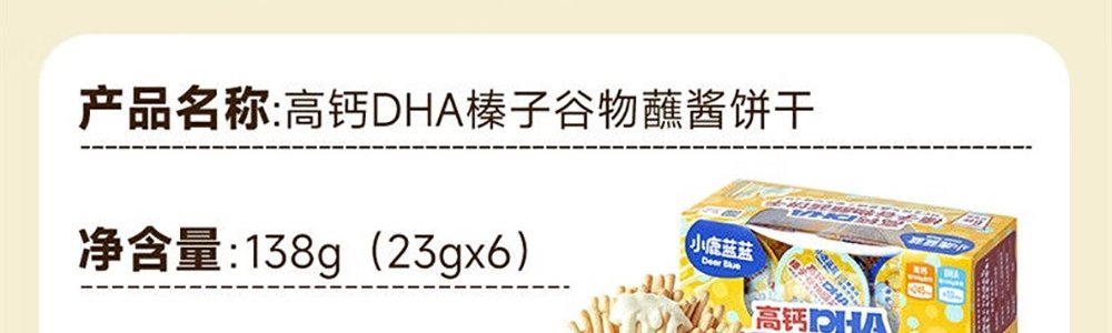 商品名称:小鹿蓝蓝 榛子谷物蘸酱饼干 138g/盒