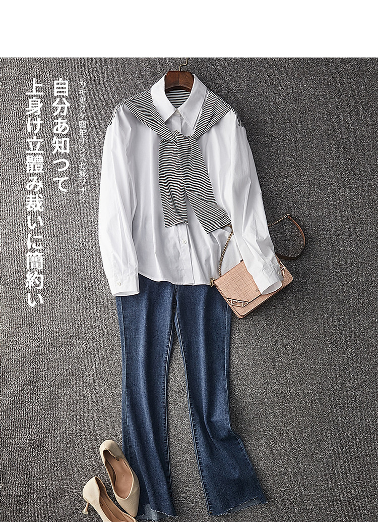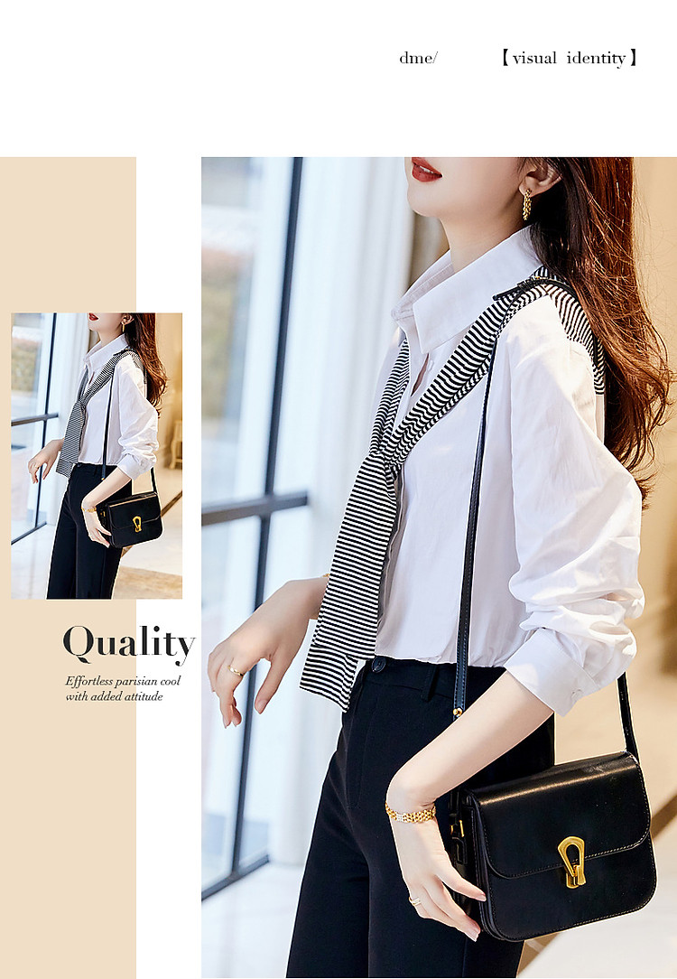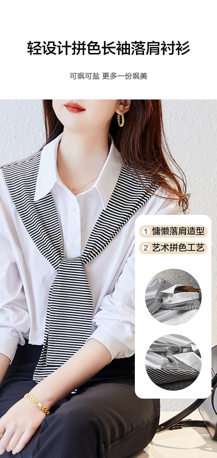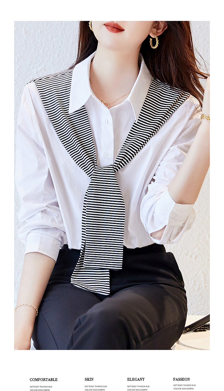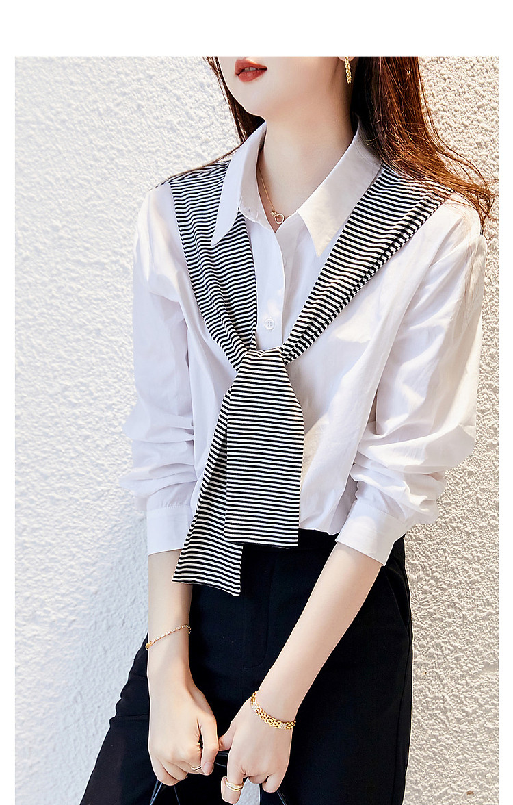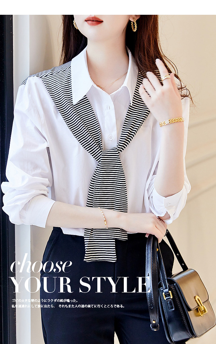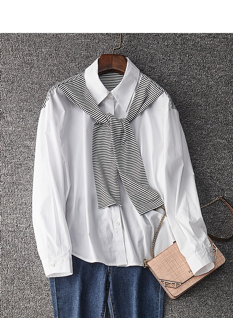 【披肩装饰衬衣】春秋翻领宽松条纹长袖落肩装衬衫女 332865