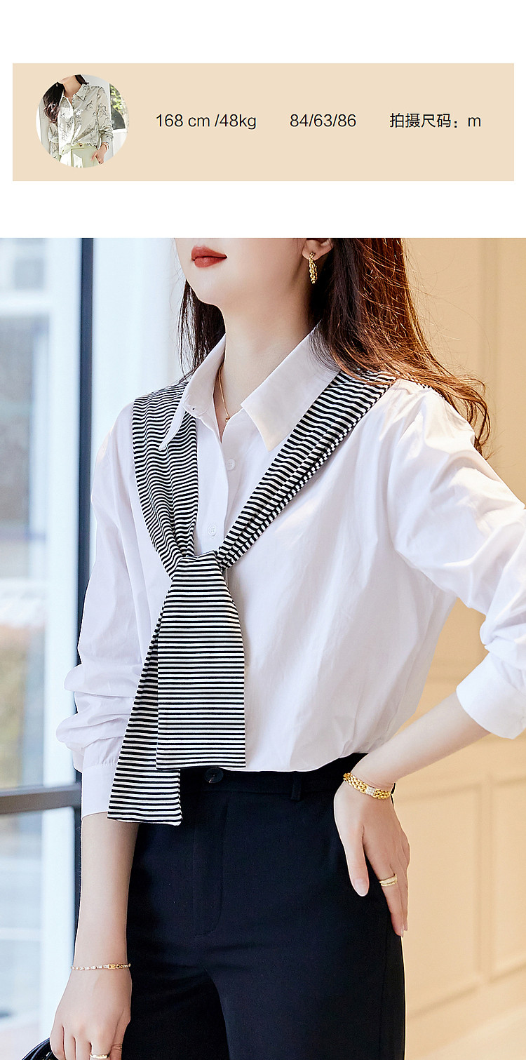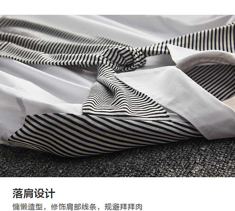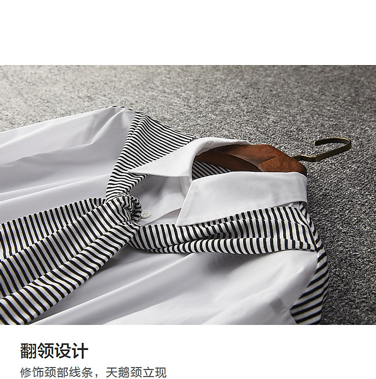 商品名称:【披肩装饰衬衣】春秋翻领宽松条纹长袖落肩装衬衫女 332865