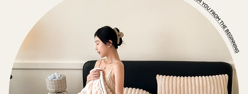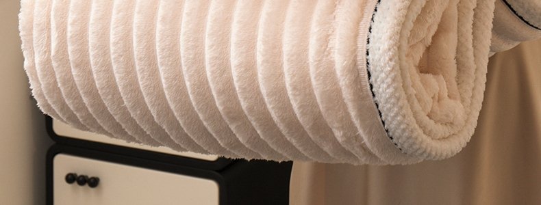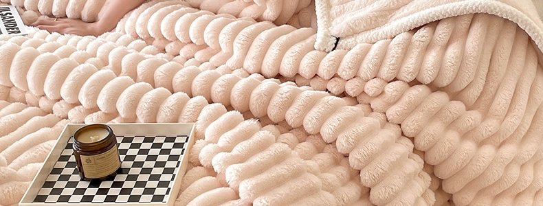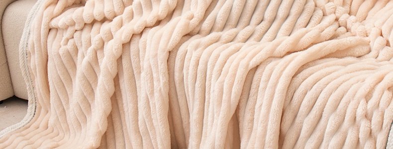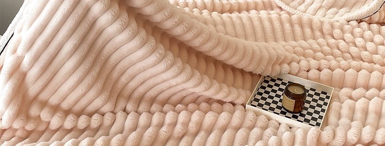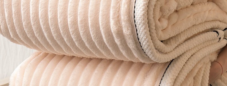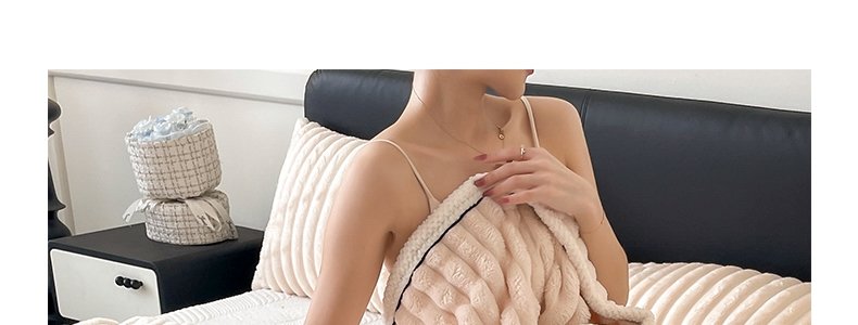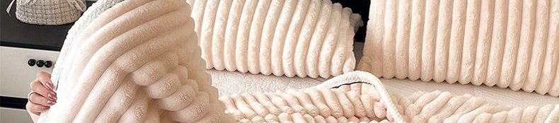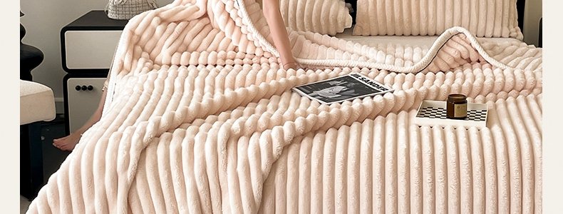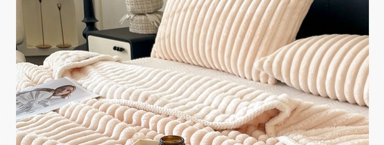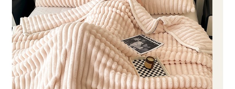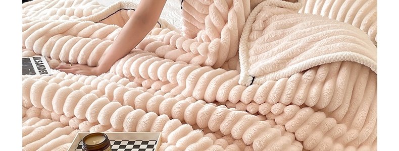 商品名称:豆豆羊家纺 秋冬新款A类兔毛抽条毛毯 象牙白(150cm*200cm)