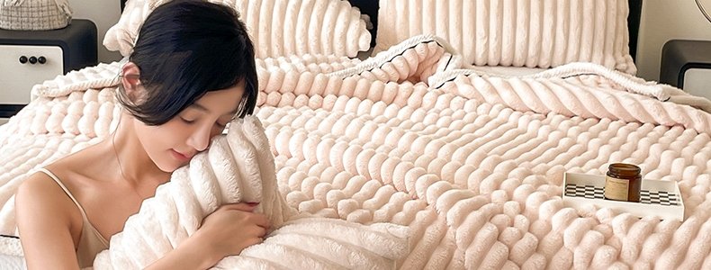 豆豆羊家纺 秋冬新款A类兔毛抽条毛毯 象牙白(150cm*200cm)