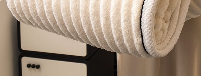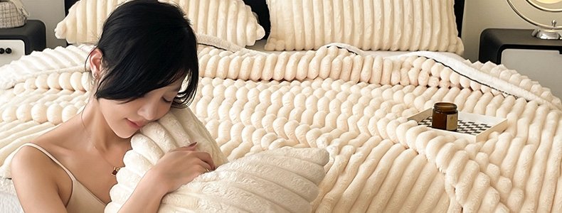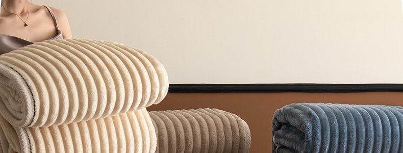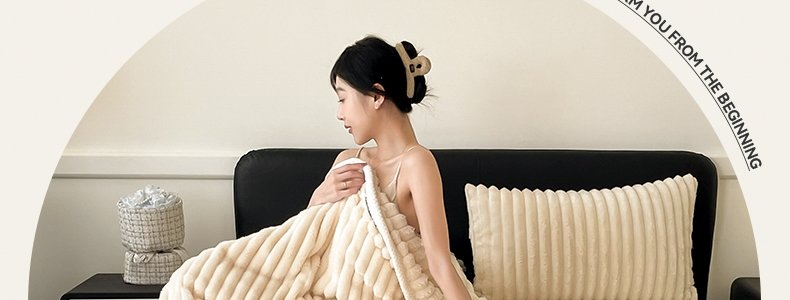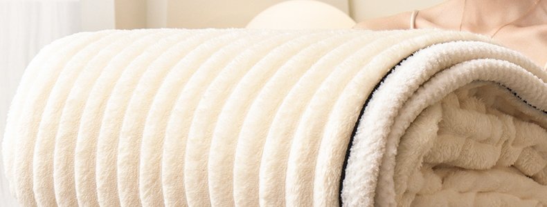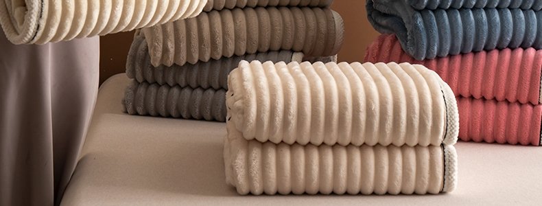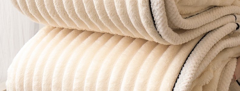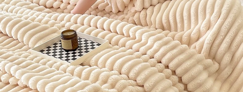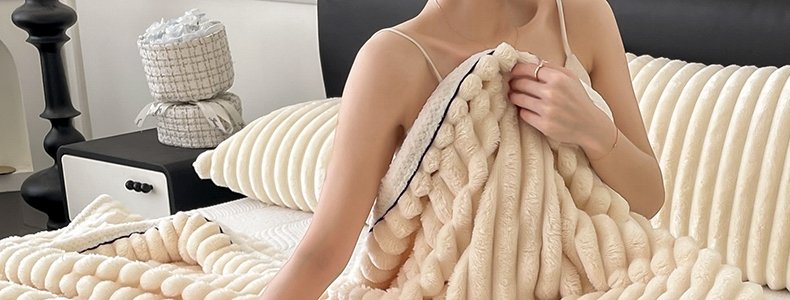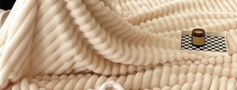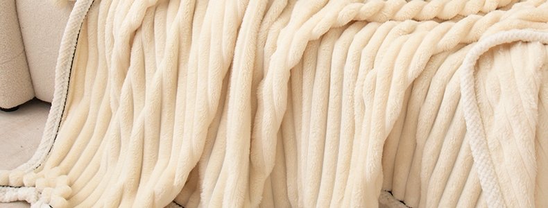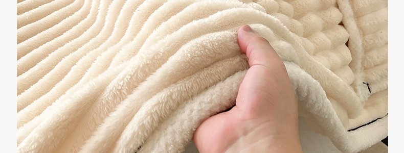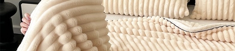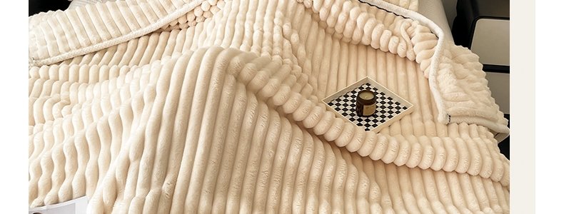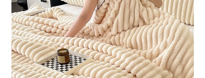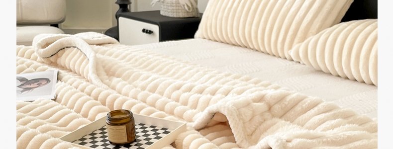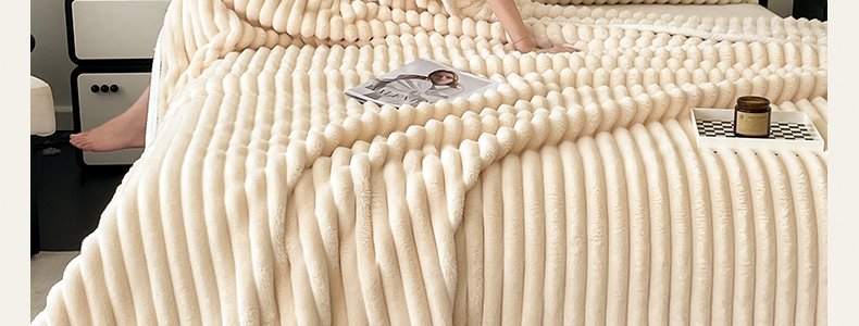 商品名称:豆豆羊家纺 秋冬新款A类兔毛抽条毛毯 杏仁黄(150cm*200cm)