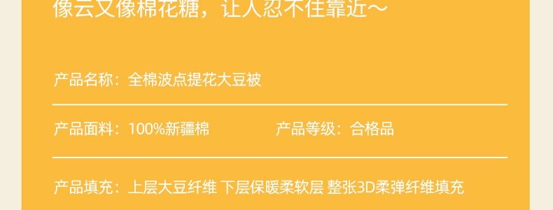 商品名称:豆豆羊家纺 全棉波点提花大豆冬被芯6.2斤 本白(200cm*230cm)