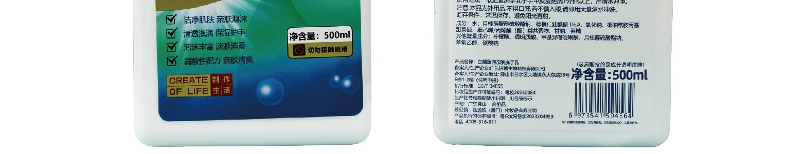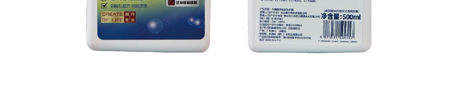 商品名称:白兰 滋养亲肤洗手乳 500ml*2瓶+雅致亲肤洗手露 500ml*2瓶