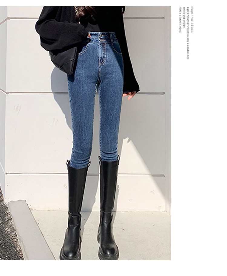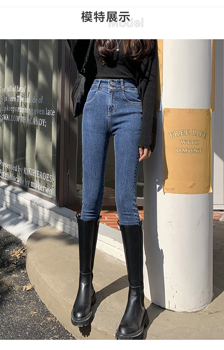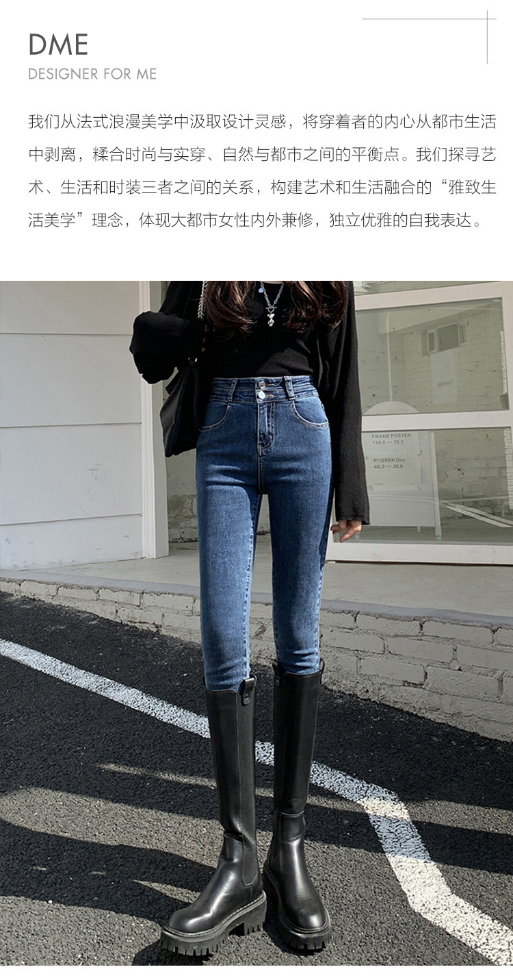商品名称:【梨形天菜系列】春秋高弹舒适双扣修身小脚裤包容藏肉女式牛仔裤 774849