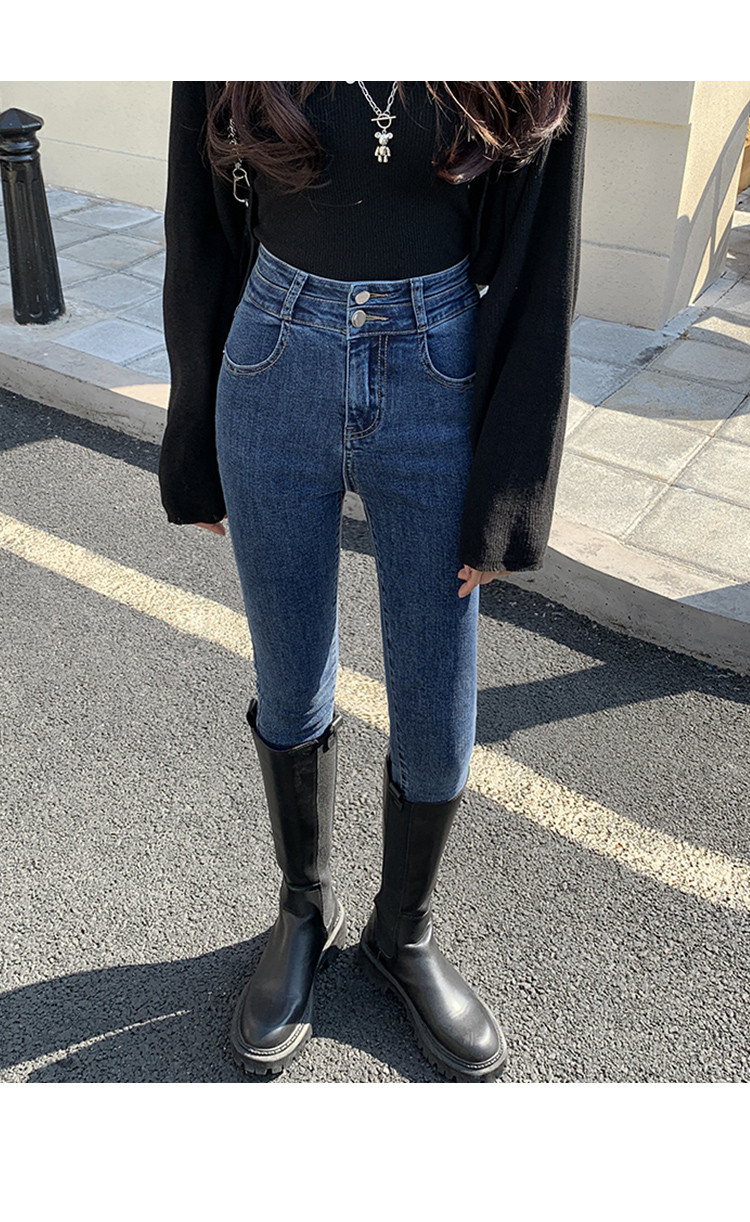 【梨形天菜系列】春秋高弹舒适双扣修身小脚裤包容藏肉女式牛仔裤 774849