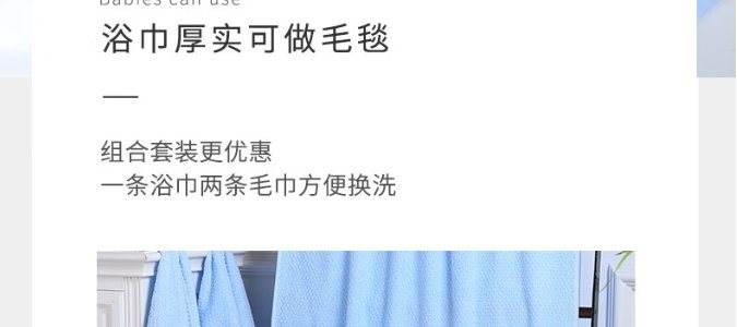 商品名称:洁丽雅(Grace)纯棉浴巾1浴巾+2毛巾组合装 蓝色