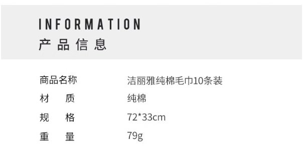 商品名称:洁丽雅(Grace)5A级抗菌毛巾10条装纯棉素色毛巾 72*33cm 79g/条 颜色随机