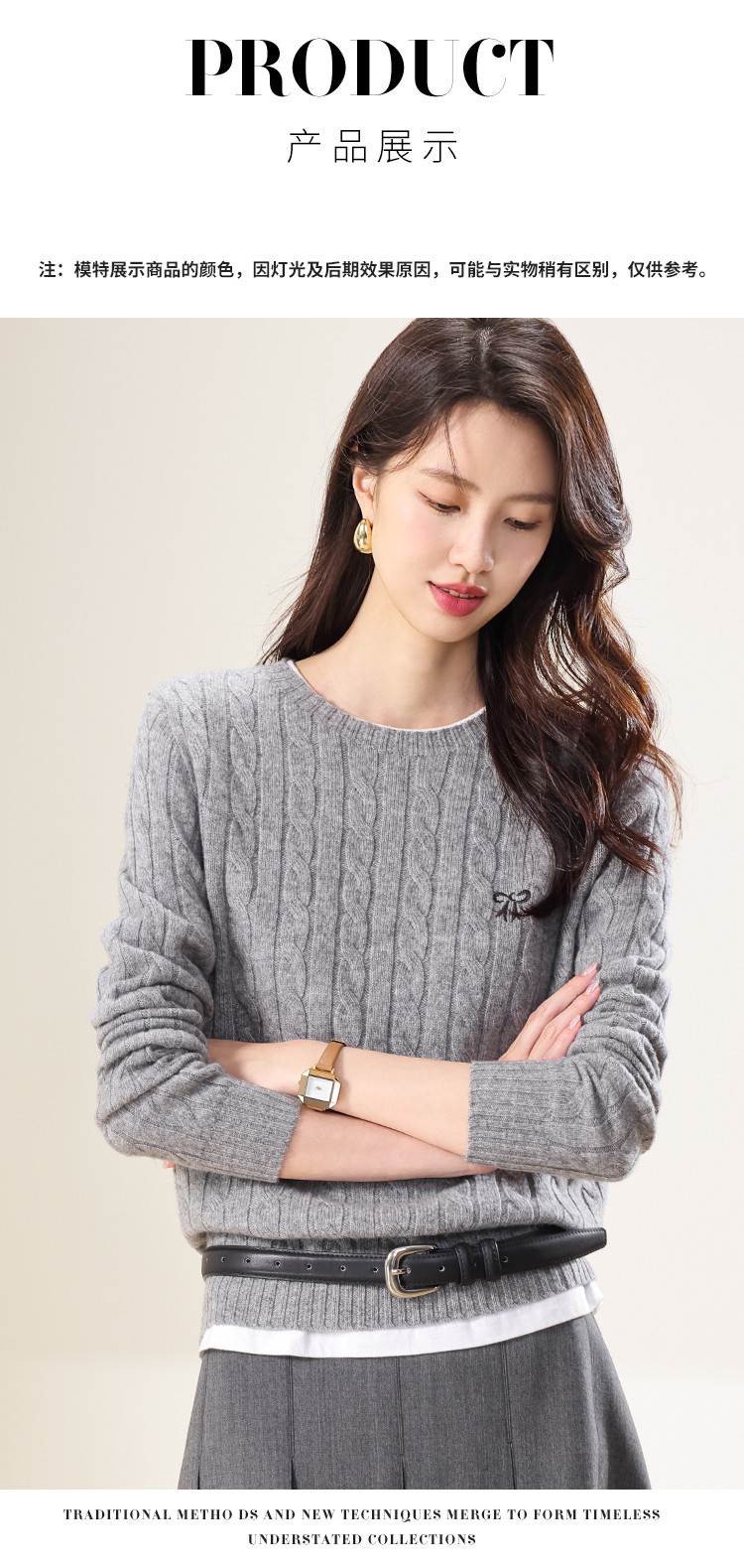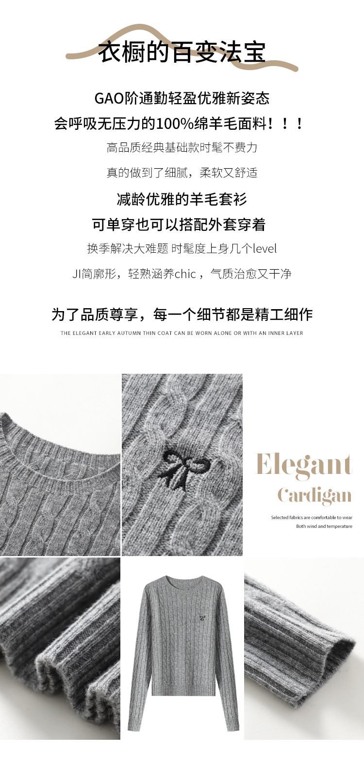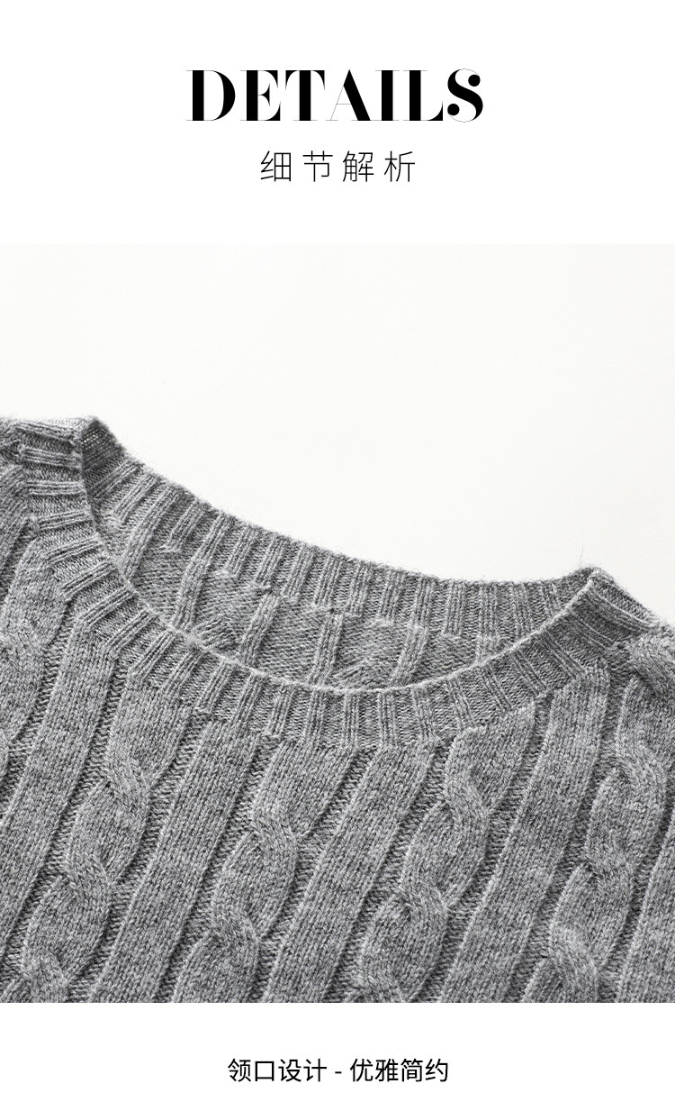 商品名称:【100%绵羊毛】圆领纯色绞花羊毛针织打底衫春款毛衣 813651
