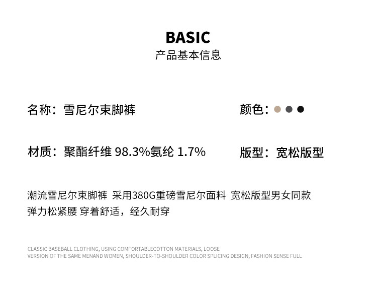 商品名称:【380克】重磅雪尼尔束脚裤男款美式休闲宽松大码高级感运动裤 835283