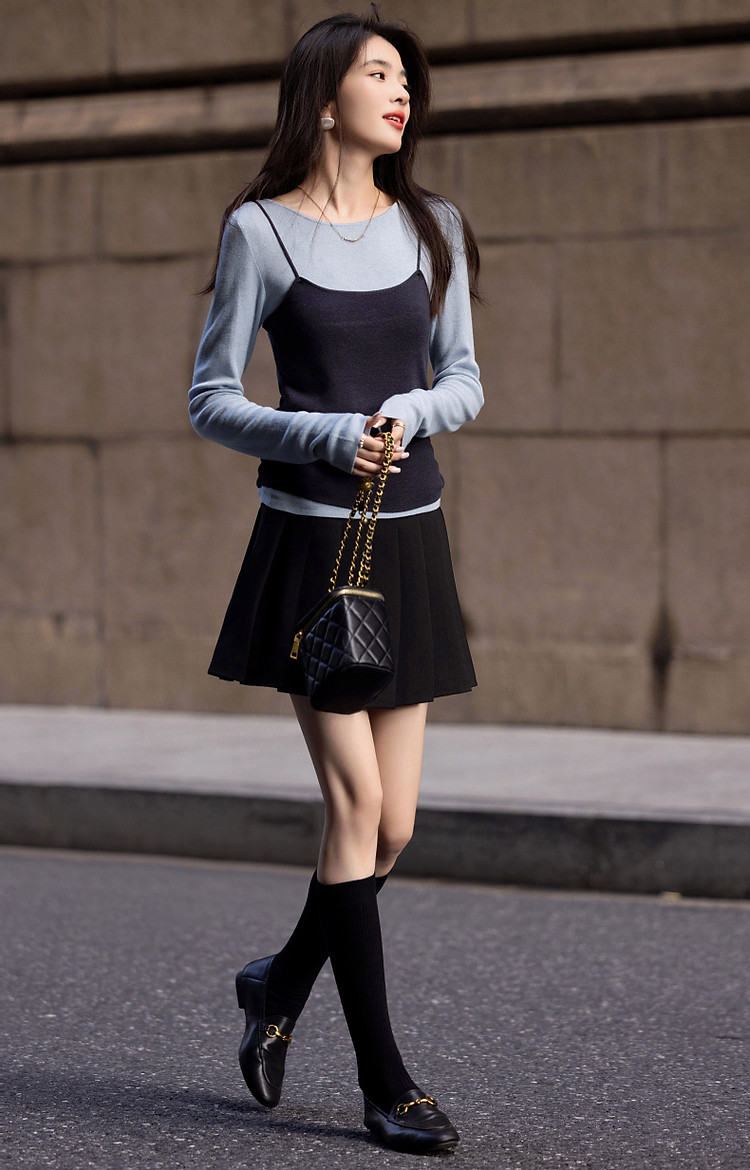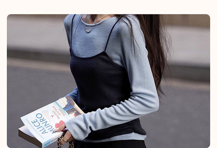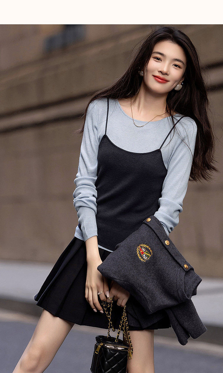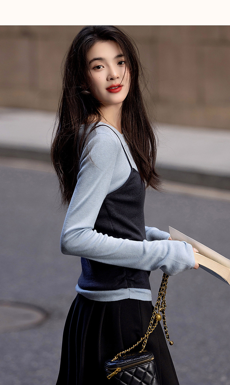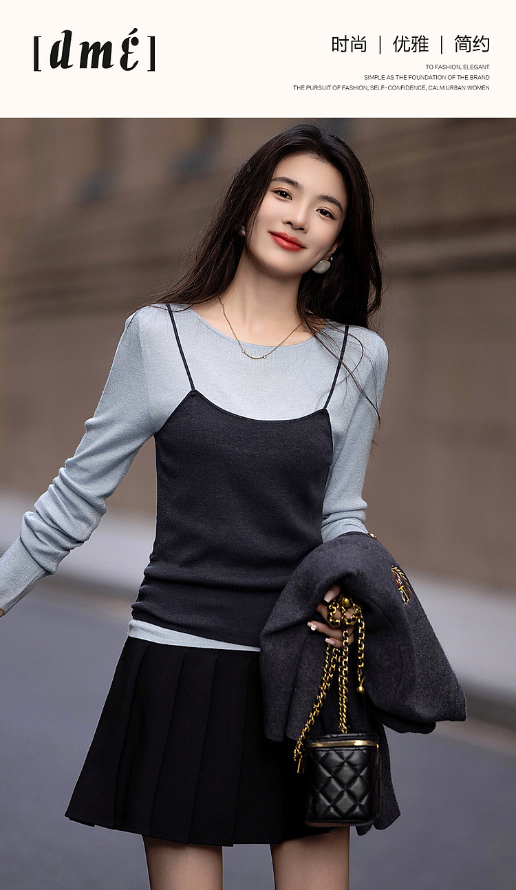 商品名称:【树莓马卡龙】春少女感假两件含绵羊毛线衫轻龄针织衫女上衣 919553