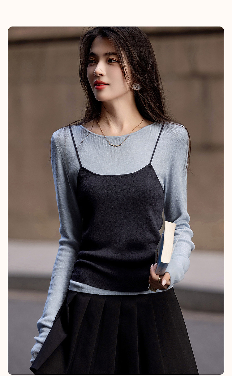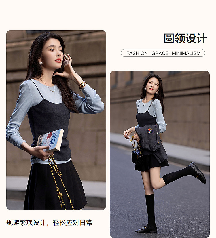 【树莓马卡龙】春少女感假两件含绵羊毛线衫轻龄针织衫女上衣 919553