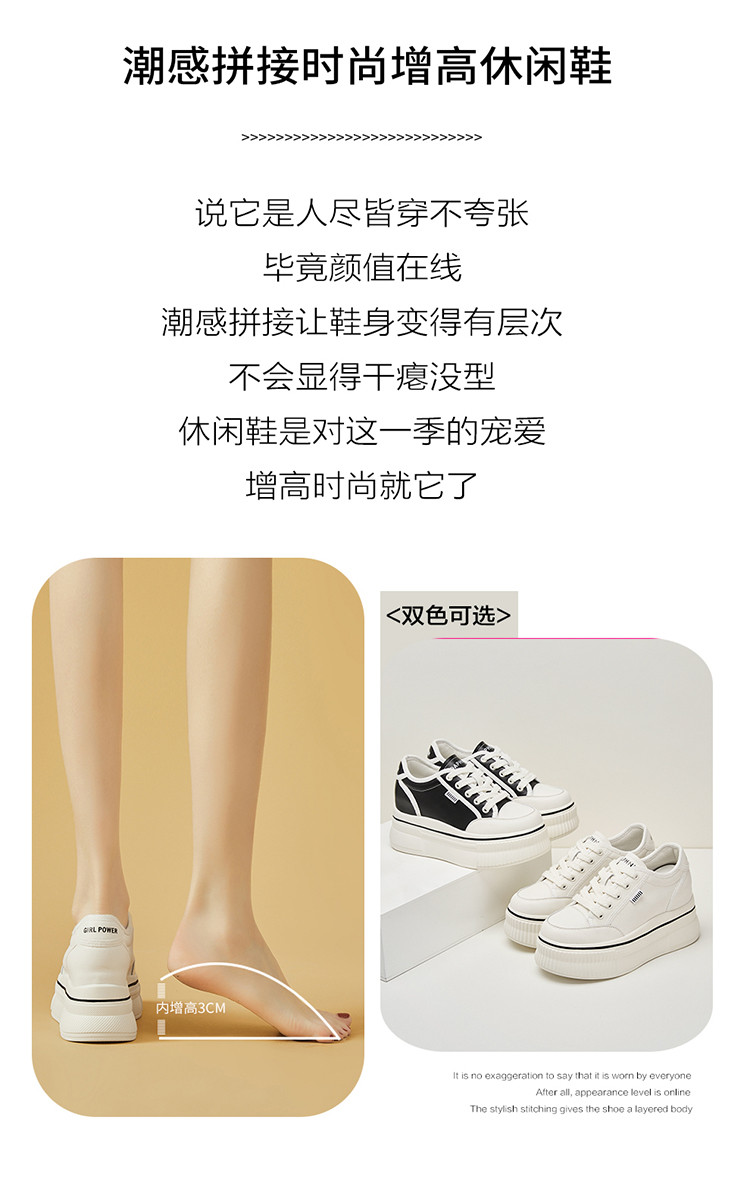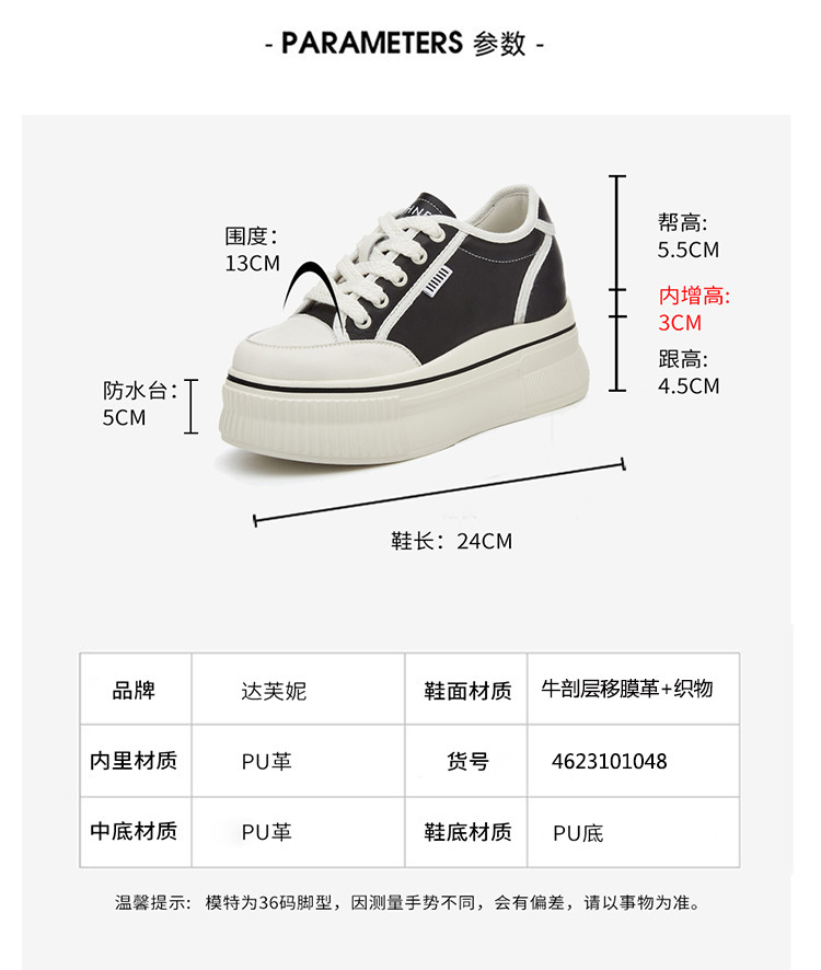商品名称:【内增高厚底】面包鞋小白鞋女百搭复古休闲鞋运动鞋女板鞋女鞋 830615
