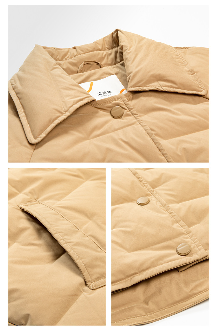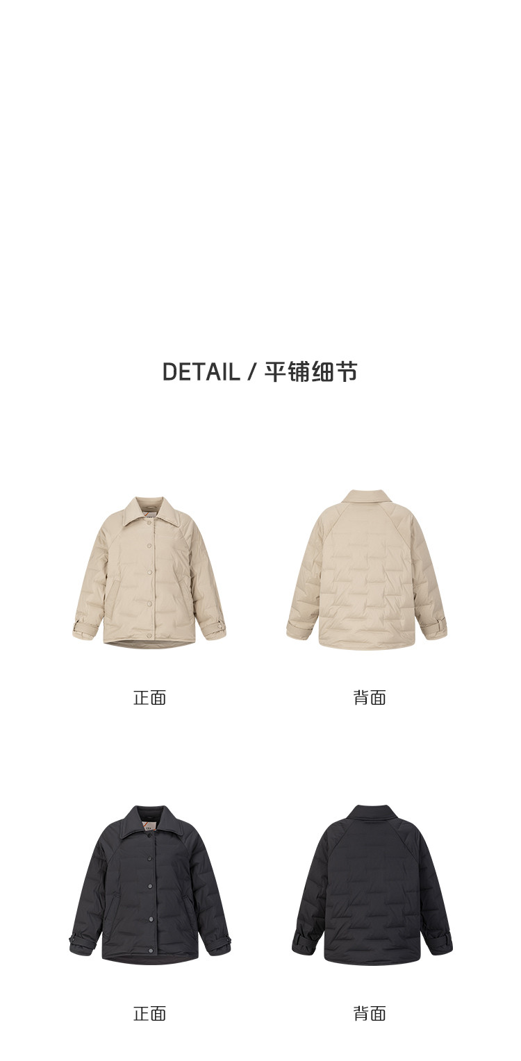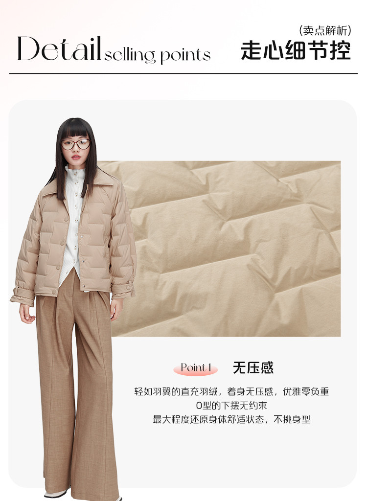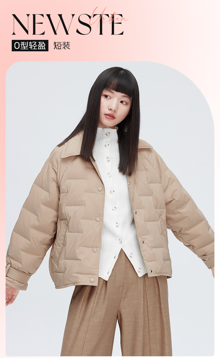 商品名称:遮肉显瘦O型轻盈直充鸭绒短装外套女宽松翻领轻薄羽绒服女短款 377494