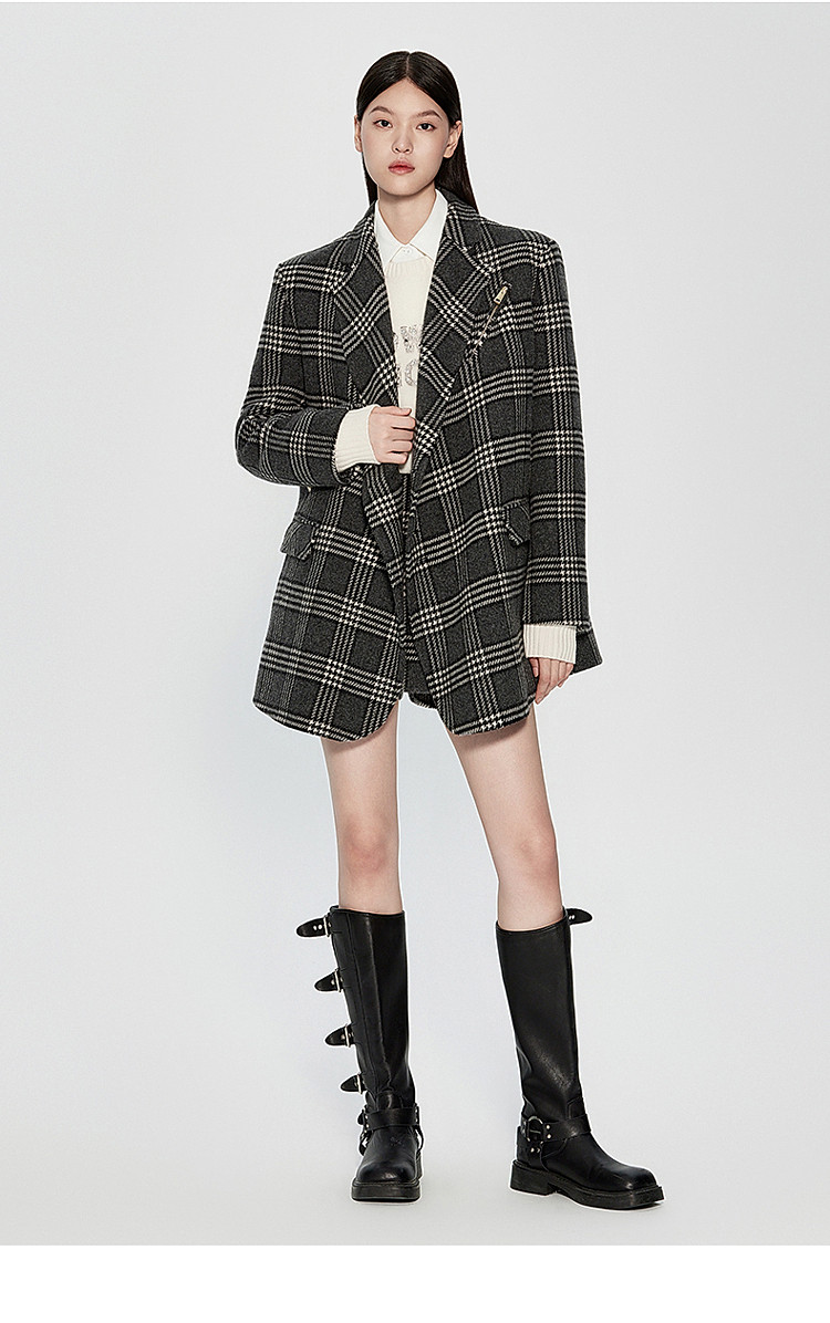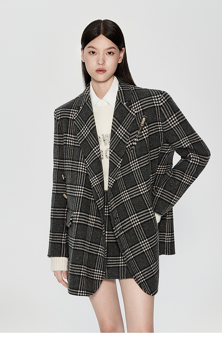 商品名称:【高奢大衣】春装 澳进口羊毛双面呢西装外套女格子 847311
