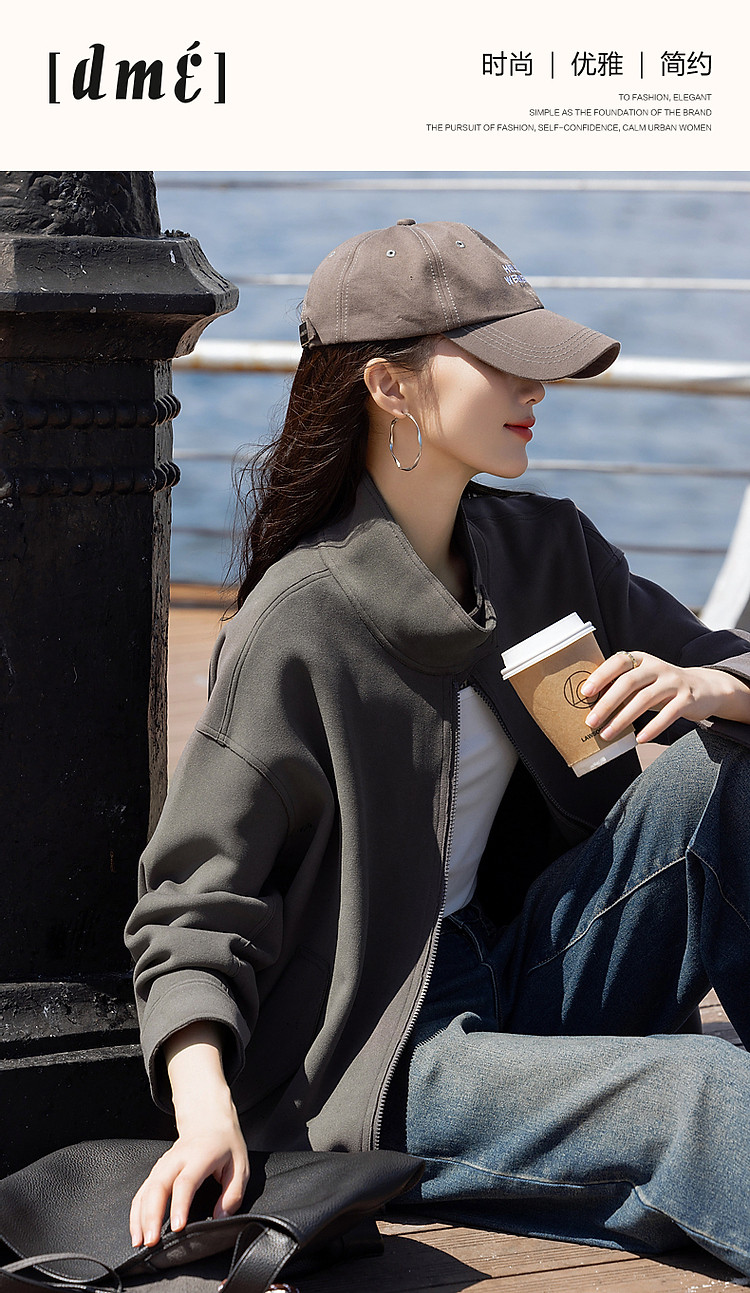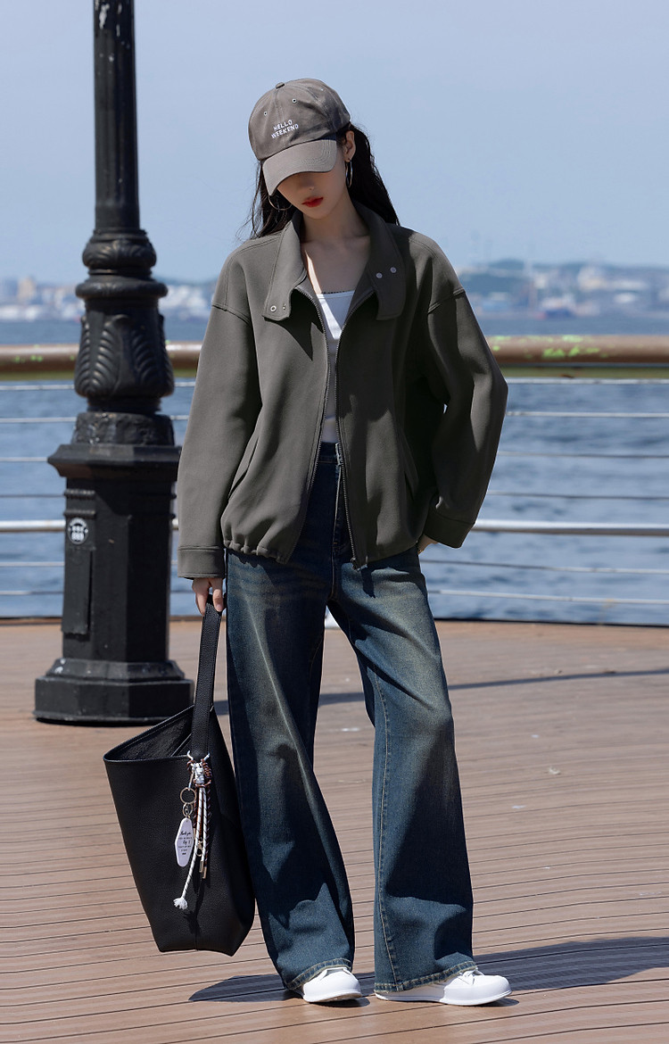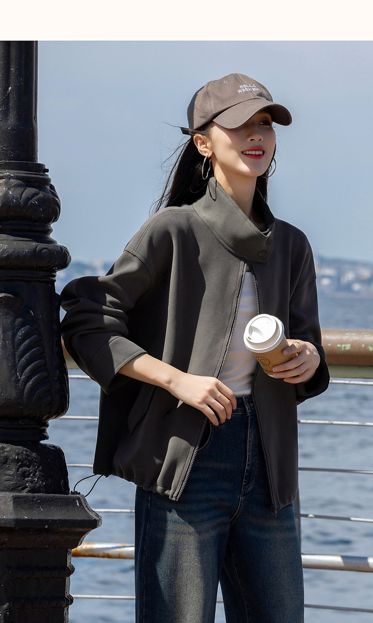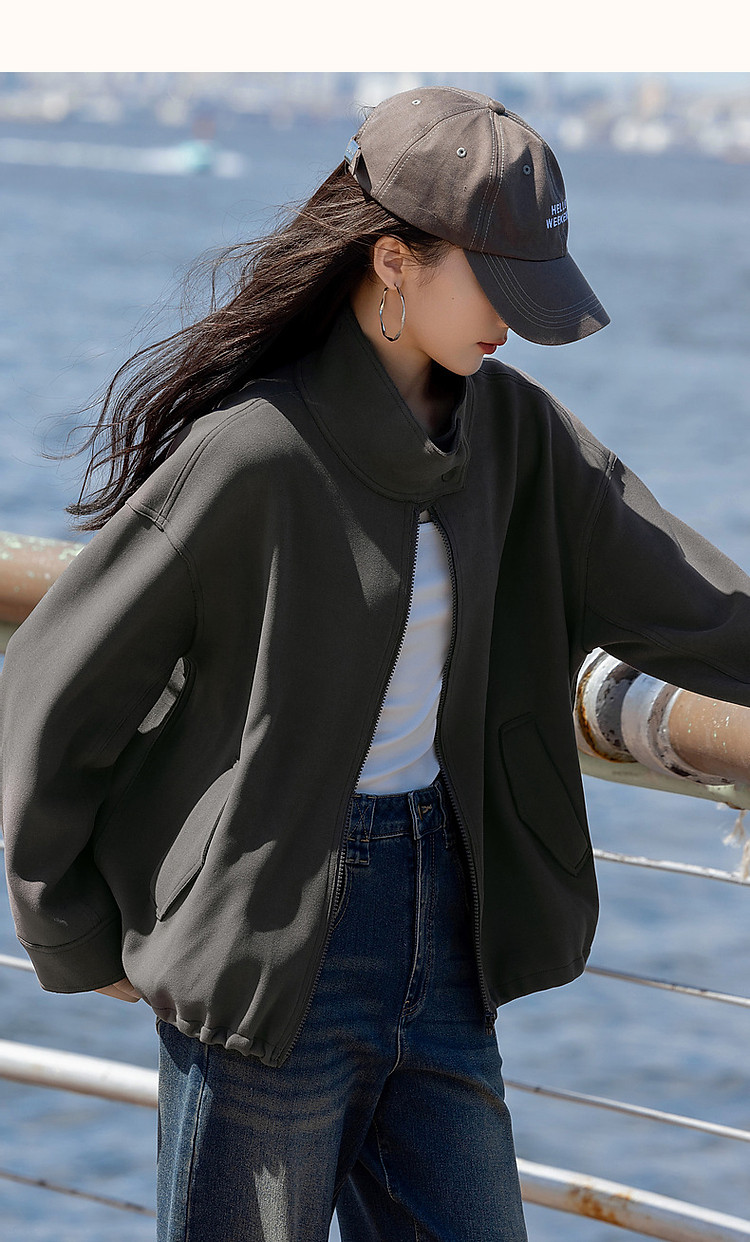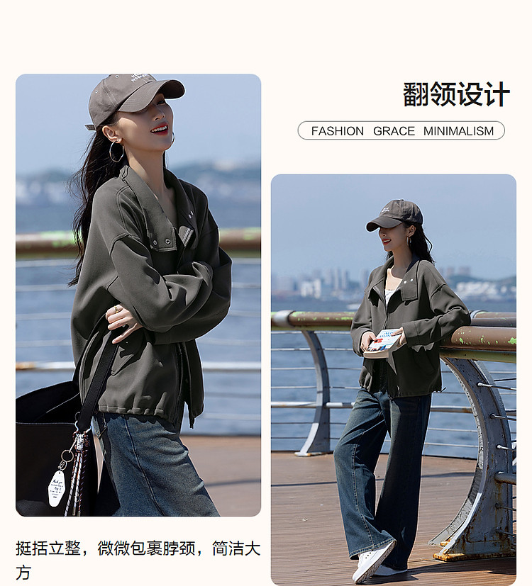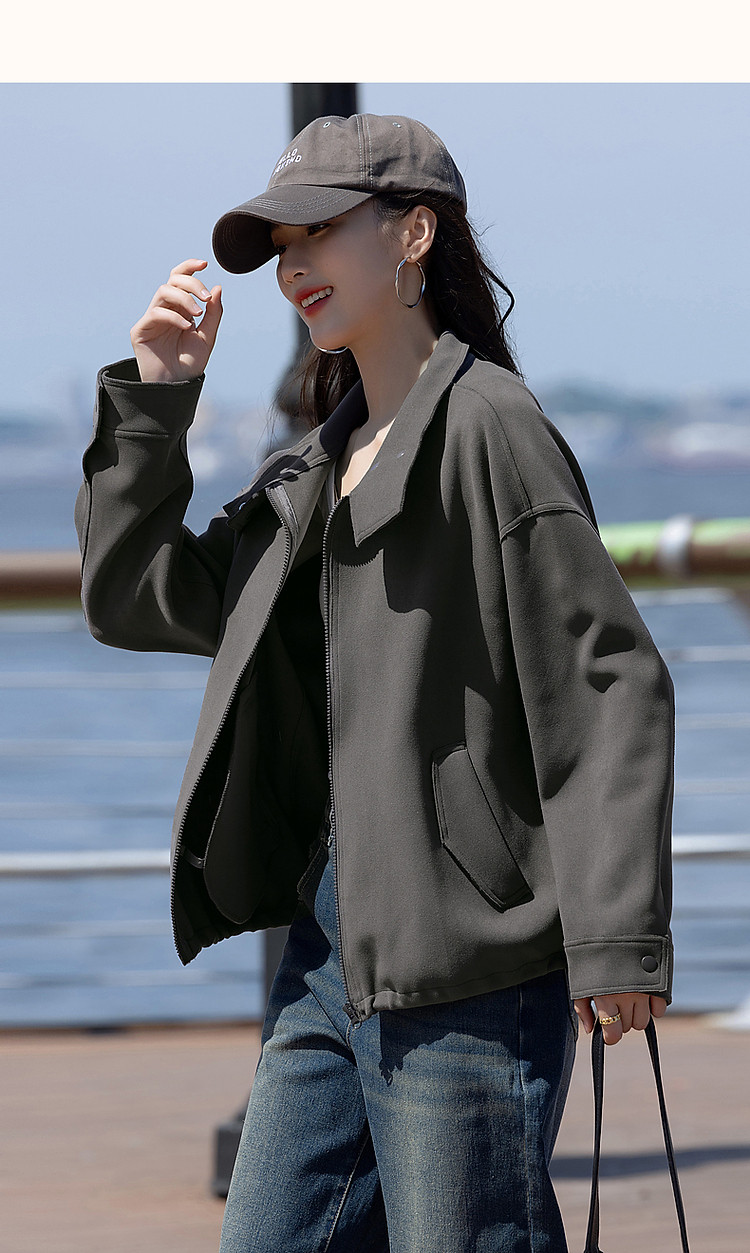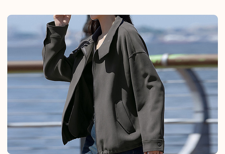 商品名称:【低饱和穿搭】冬静奢质感都市翻领落肩口袋装饰夹克式外套女短款 716161