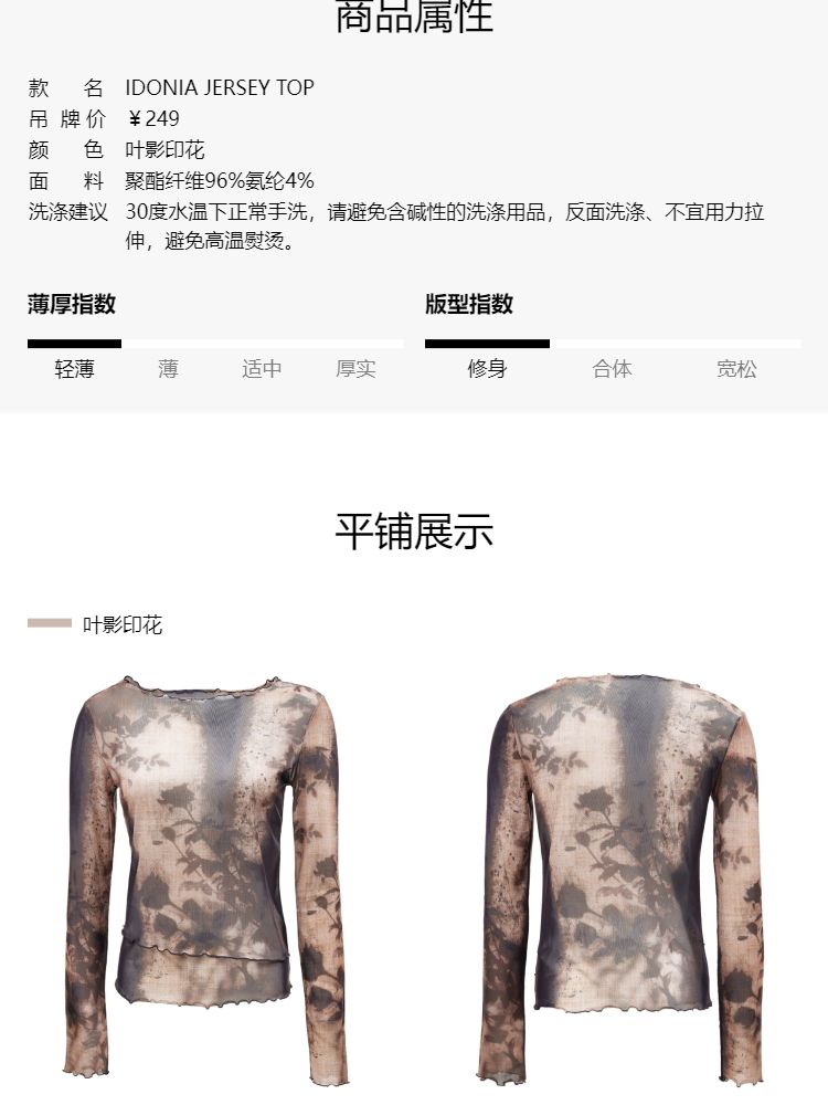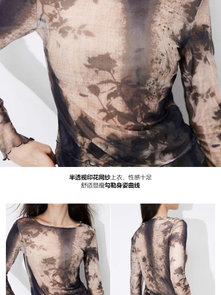 商品名称:【木耳边印花】夏季修身显瘦轻薄长袖T恤女 269082