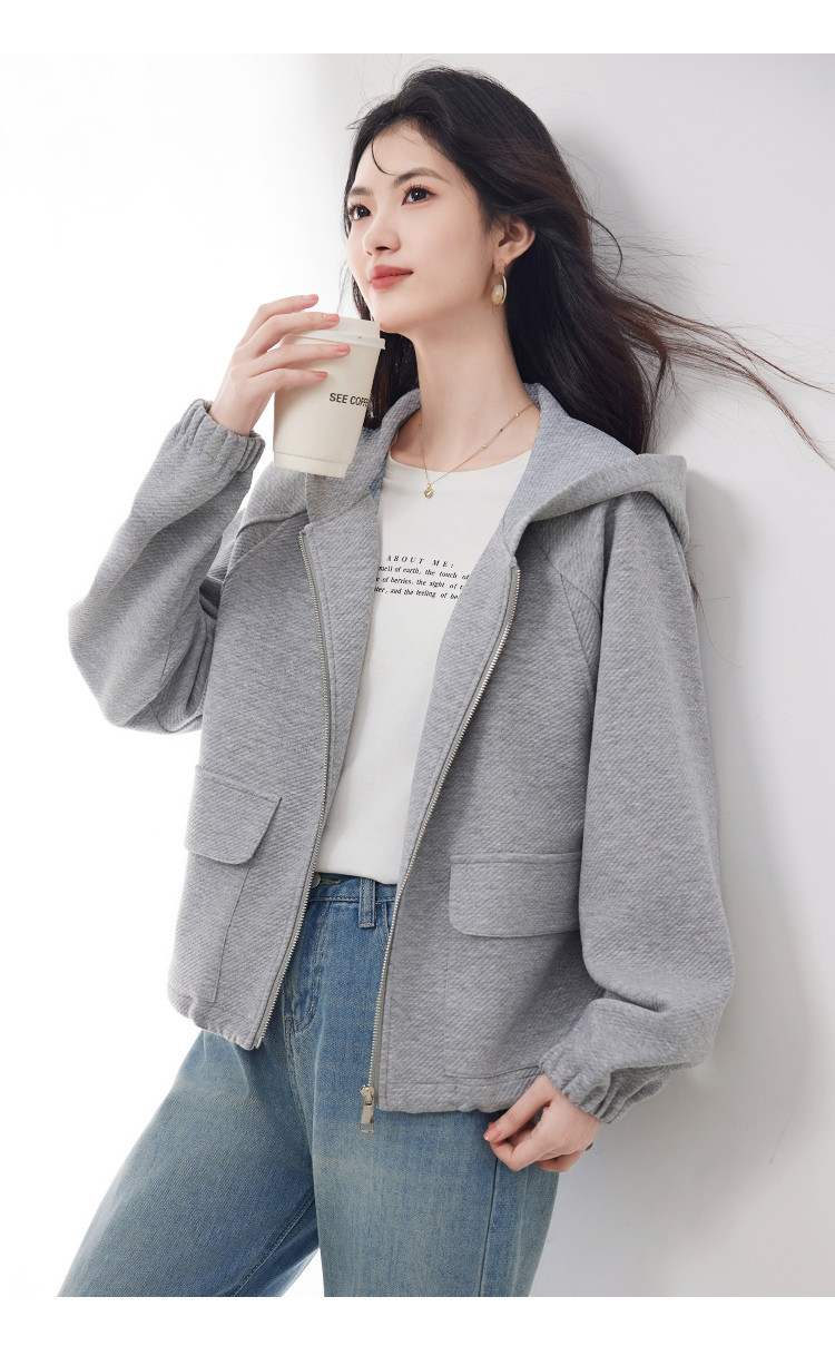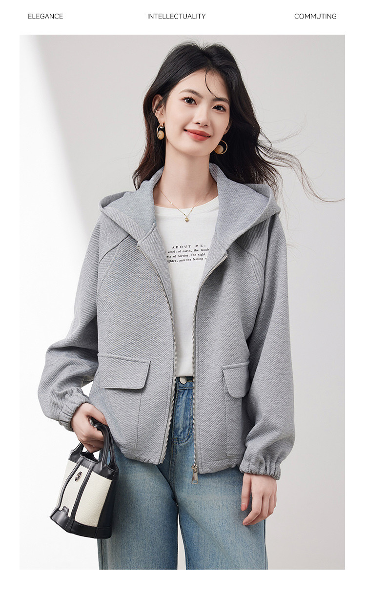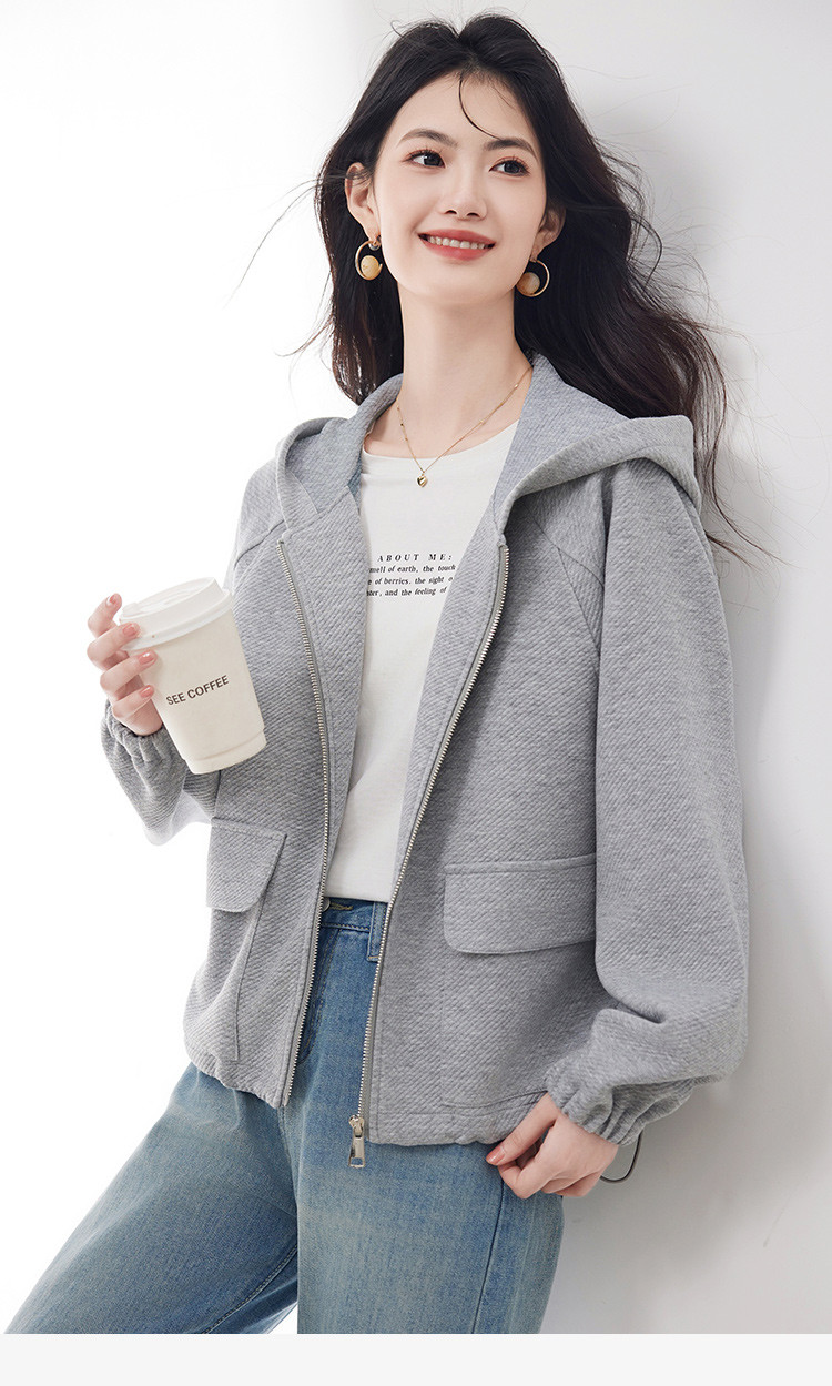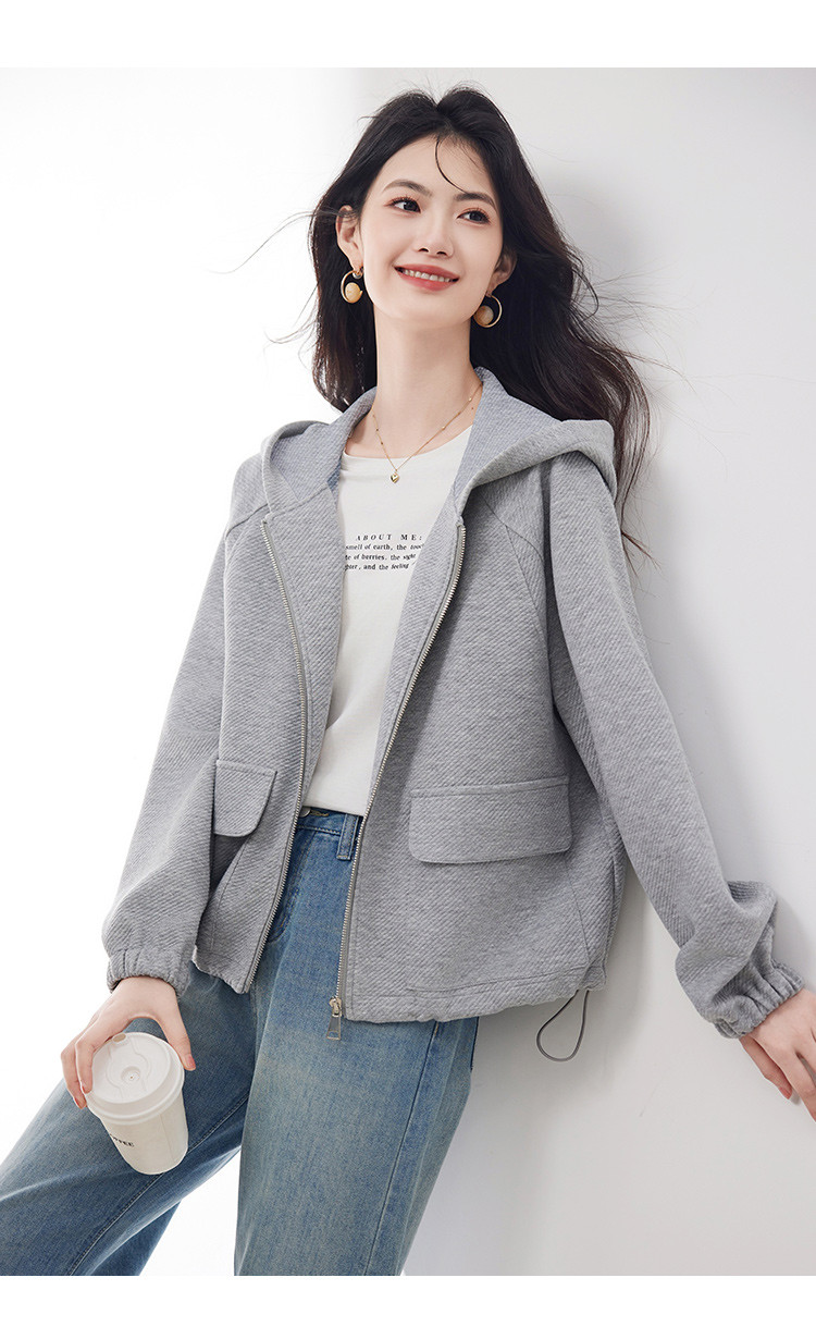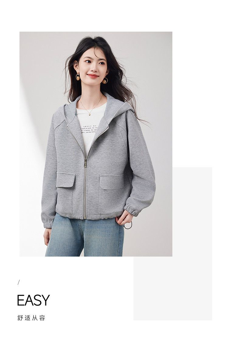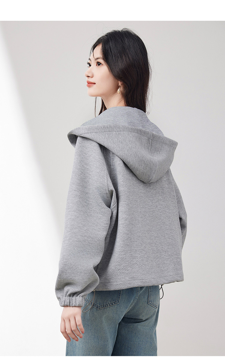 商品名称:休闲百搭连帽外套女2025春季新款时尚宽松短款针织卫衣开衫女 296600